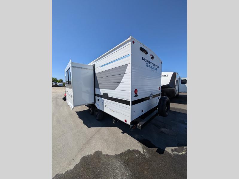 The Salem Cruise Lite travel trailers and toy haulers are value-minded units packed with great camping features! There are a variety of floorplans to choose from between three different regions. The enclosed Accessibelly will help protect against the elements and debris during transport, and the exterior retro/metal redesign is sure to be eye-catching! There are stylish roller shades inside, along with updated backsplash, elegant curtain rods and curtains, plus many more interior comforts! Choose a Salem Cruise Lite today for quality and value!