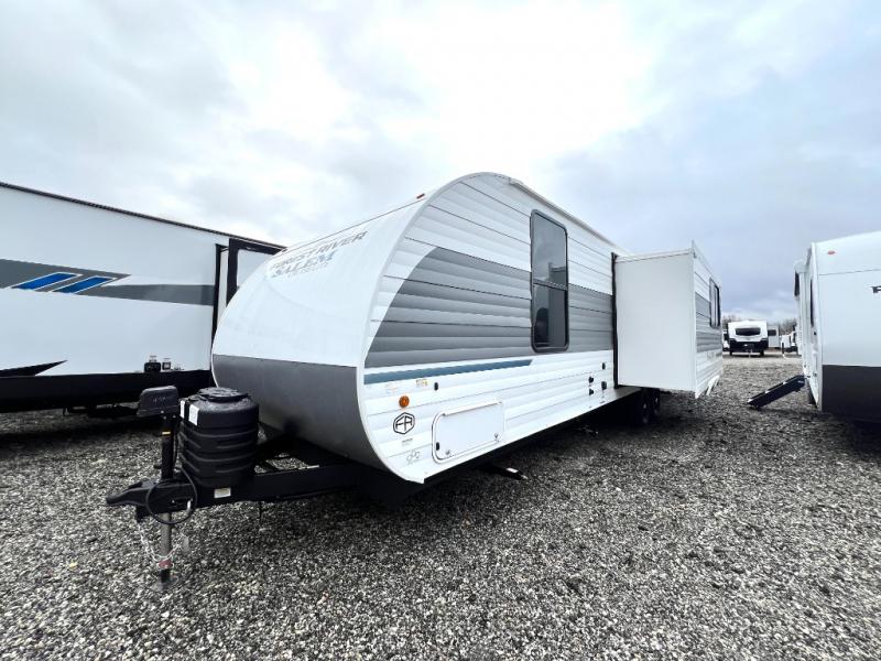 The Salem Cruise Lite travel trailers and toy haulers are value-minded units packed with great camping features! There are a variety of floorplans to choose from between three different regions. The enclosed Accessibelly will help protect against the elements and debris during transport, and the exterior retro/metal redesign is sure to be eye-catching! There are stylish roller shades inside, along with updated backsplash, elegant curtain rods and curtains, plus many more interior comforts! Choose a Salem Cruise Lite today for quality and value!