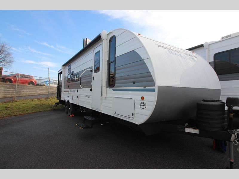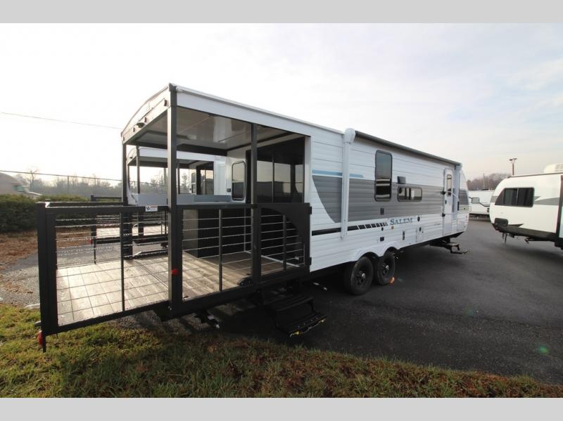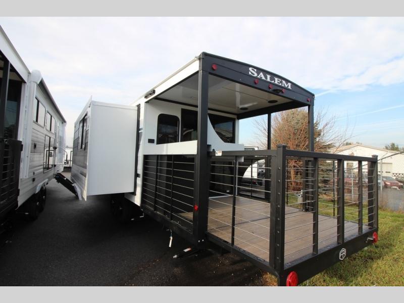 The Salem Cruise Lite travel trailers and toy haulers are value-minded units packed with great camping features! There are a variety of floorplans to choose from between three different regions. The enclosed Accessibelly will help protect against the elements and debris during transport, and the exterior retro/metal redesign is sure to be eye-catching! There are stylish roller shades inside, along with updated backsplash, elegant curtain rods and curtains, plus many more interior comforts! Choose a Salem Cruise Lite today for quality and value!