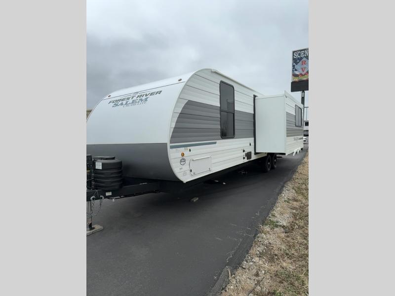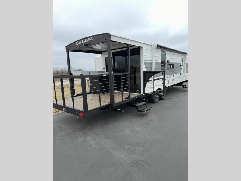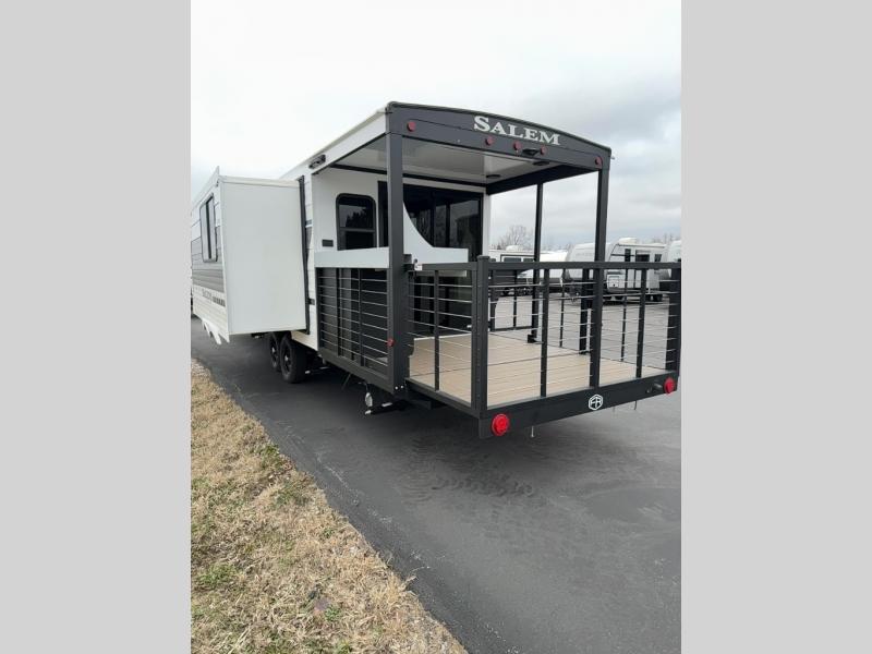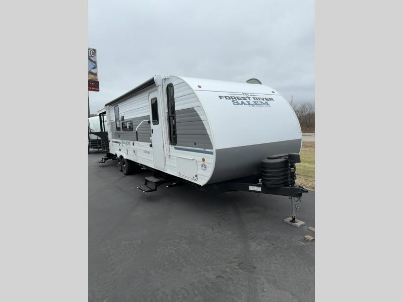 The Salem Cruise Lite travel trailers and toy haulers are value-minded units packed with great camping features! There are a variety of floorplans to choose from between three different regions. The enclosed Accessibelly will help protect against the elements and debris during transport, and the exterior retro/metal redesign is sure to be eye-catching! There are stylish roller shades inside, along with updated backsplash, elegant curtain rods and curtains, plus many more interior comforts! Choose a Salem Cruise Lite today for quality and value!