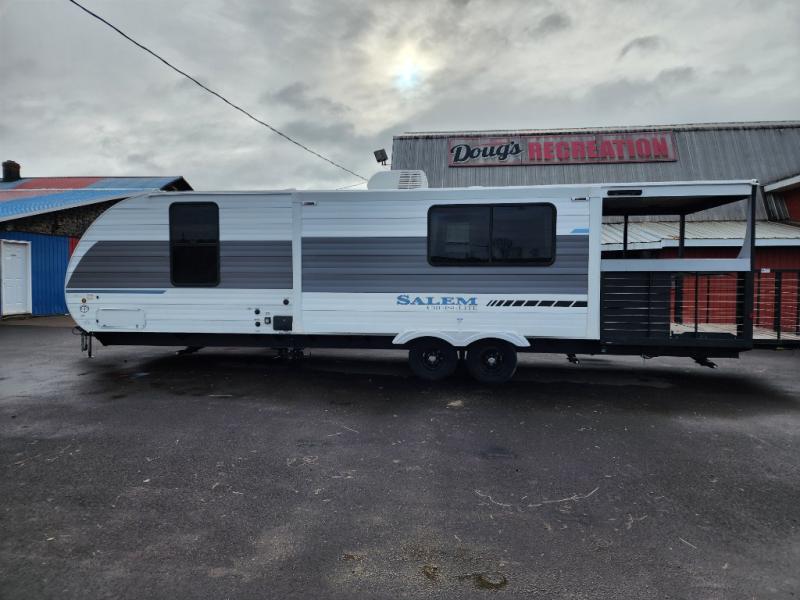 The Salem Cruise Lite travel trailers and toy haulers are value-minded units packed with great camping features! There are a variety of floorplans to choose from between three different regions. The enclosed Accessibelly will help protect against the elements and debris during transport, and the exterior retro/metal redesign is sure to be eye-catching! There are stylish roller shades inside, along with updated backsplash, elegant curtain rods and curtains, plus many more interior comforts! Choose a Salem Cruise Lite today for quality and value!