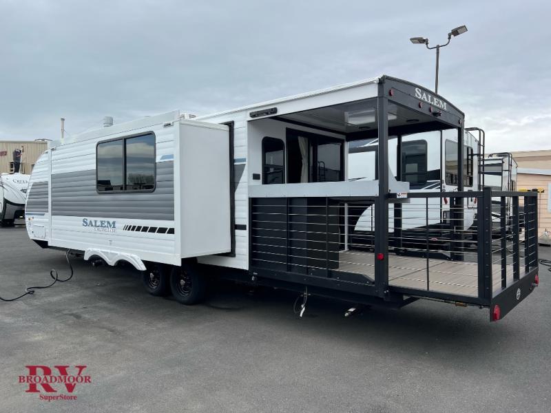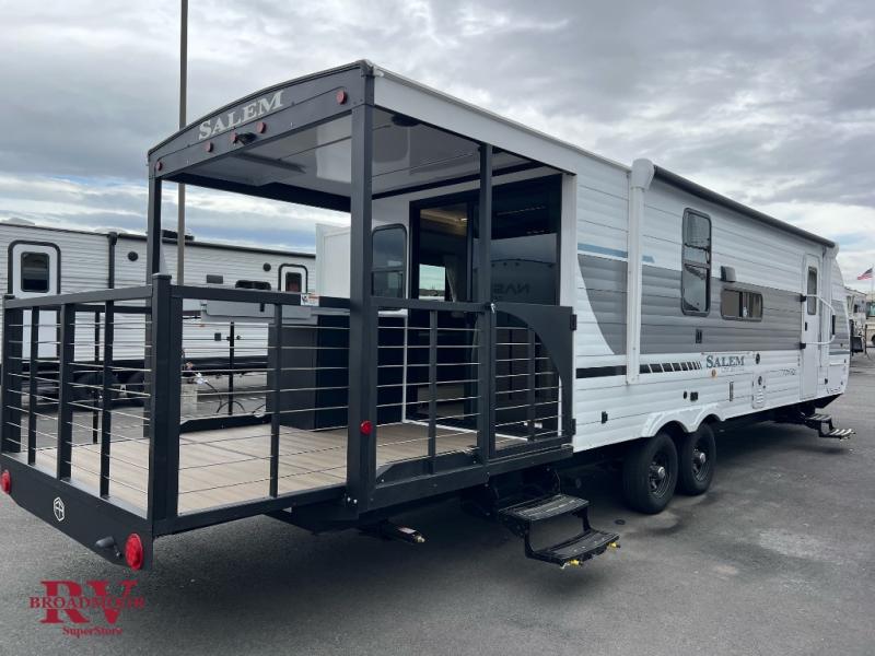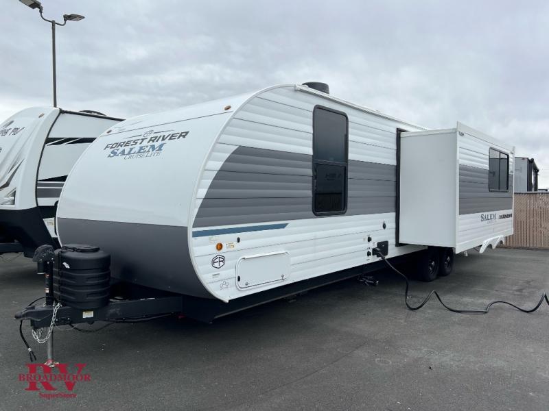 The Salem Cruise Lite travel trailers and toy haulers are value-minded units packed with great camping features! There are a variety of floorplans to choose from between three different regions. The enclosed Accessibelly will help protect against the elements and debris during transport, and the exterior retro/metal redesign is sure to be eye-catching! There are stylish roller shades inside, along with updated backsplash, elegant curtain rods and curtains, plus many more interior comforts! Choose a Salem Cruise Lite today for quality and value!