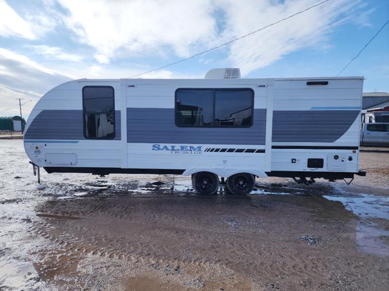 The Salem Cruise Lite travel trailers and toy haulers are value-minded units packed with great camping features! There are a variety of floorplans to choose from between two different regions. The enclosed Accessibelly will help protect against the elements and debris during transport, and the exterior retro/metal redesign is sure to be eye-catching! There are stylish roller shades inside, along with updated backsplash, elegant curtain rods and curtains, plus many more interior comforts! Choose a Salem Cruise Lite today for quality and value!