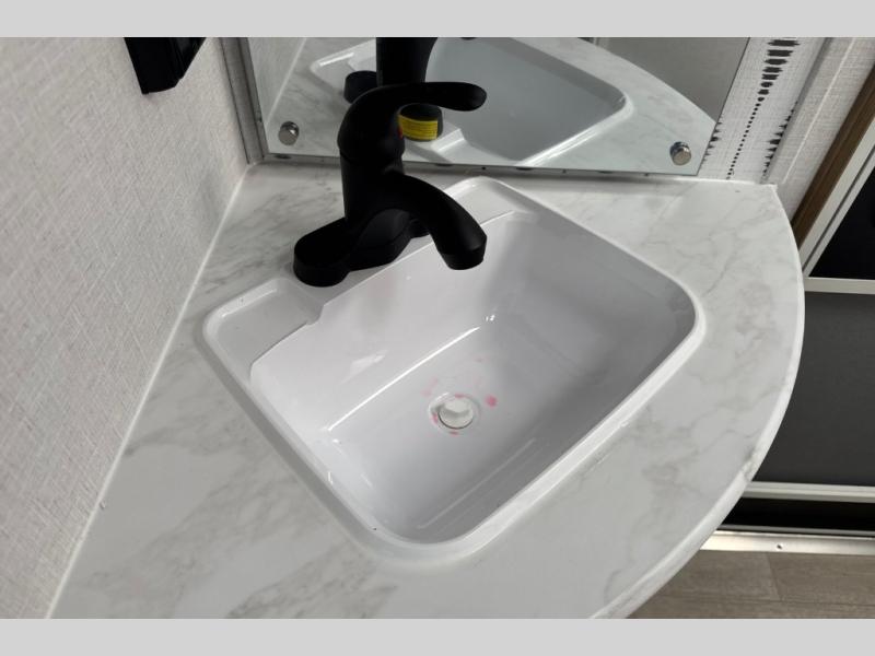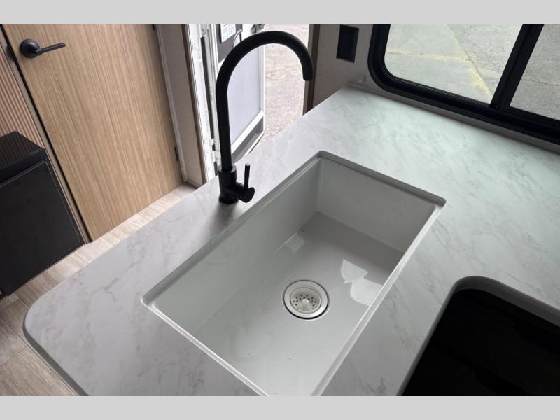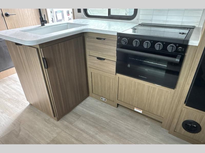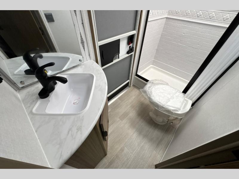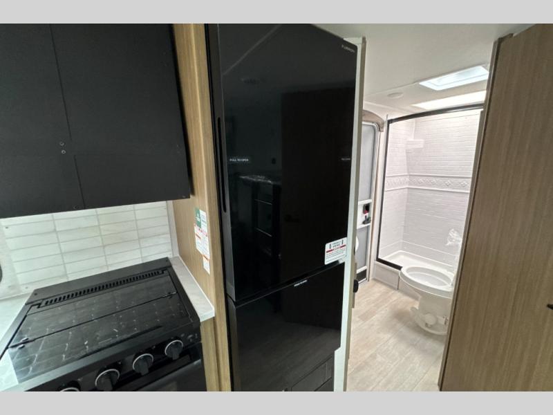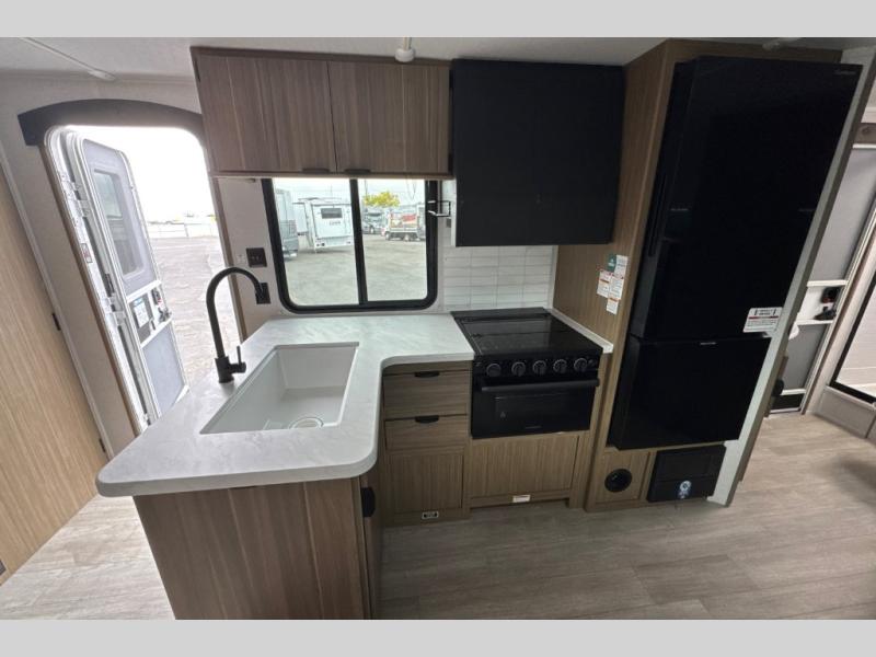 This travel trailer is great for a larger family! With double-size bunk beds and a slide out in the main area, you can see how this unit can serve your family well during the day and night. You will find all the kitchen amenities needed to prepare your meals, and a full rear corner bath allows everyone to get cleaned up after a fun day outside. The private bedroom allows you to sleep on a walk-around custom king bed with Versa Tilt and store your clothing in the two closets. And the pass-thru storage will let you store fishing poles, camp chairs, and more!