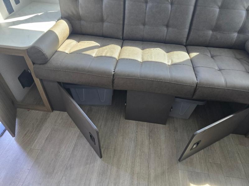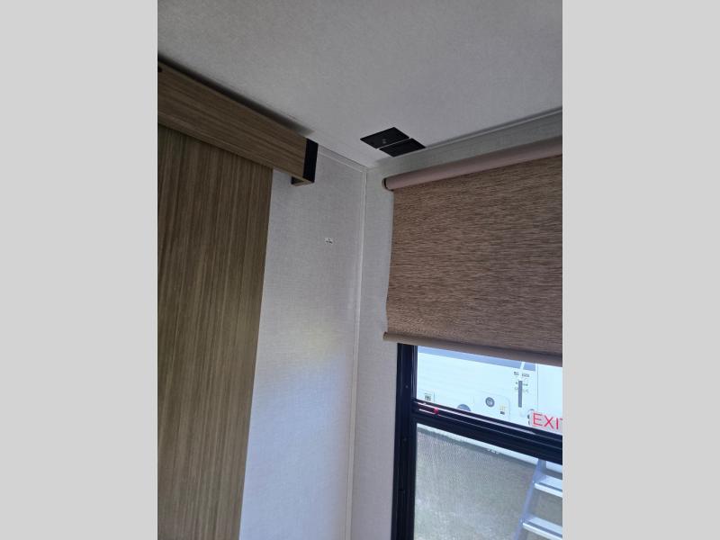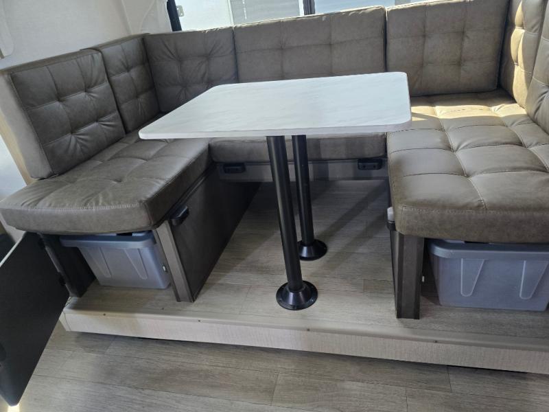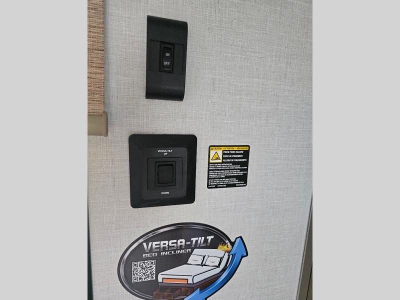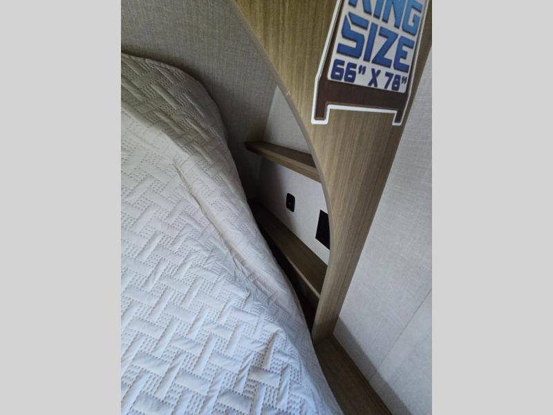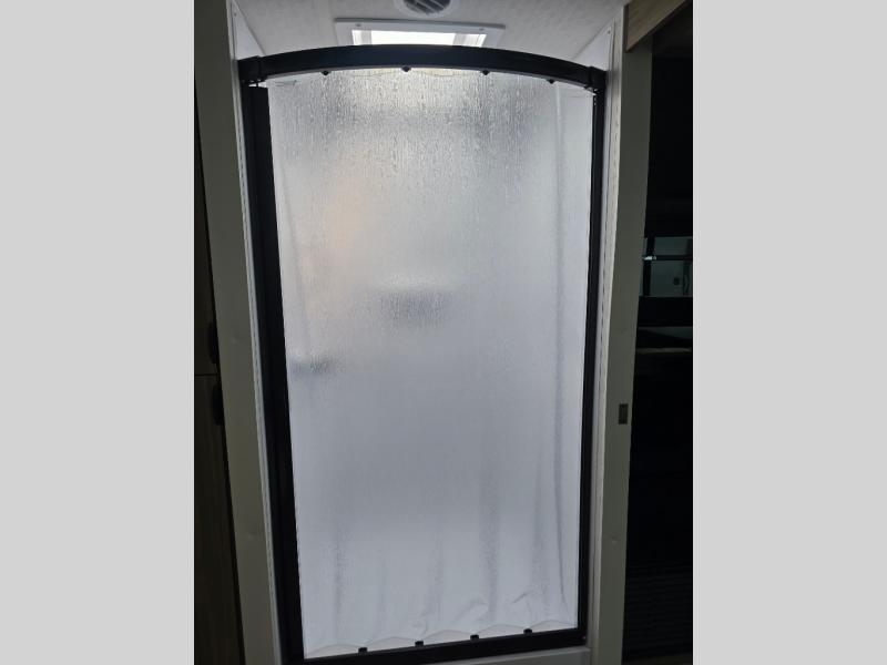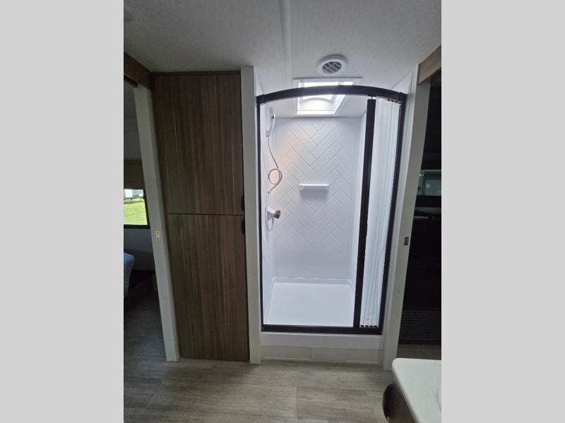 This travel trailer is packed full of features, but is still lightweight coming in at just over 5,000 lbs.! You will feel right at home in the front master bedroom with a custom king bed with Versa Tilt and a closet to keep your clothes tidy. The walk-through bathroom has a walk-in shower with fiberglass surround and a skylight above for added natural lighting as you get ready. The U-shaped dinette slide has a panoramic window for you to enjoy your beautiful scenery as you eat dinner, and there is a fireplace at the entertainment center for a relaxing evening indoors. There is a pass-through storage area to store your outdoor camping gear, and a 16' awning will provide shade as you're visiting outdoors.