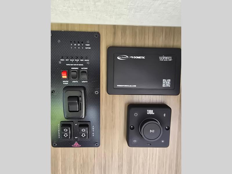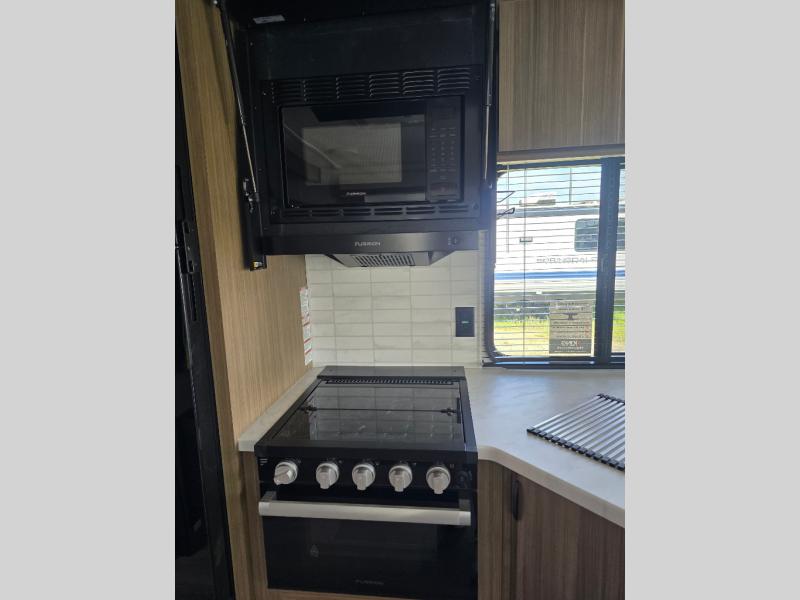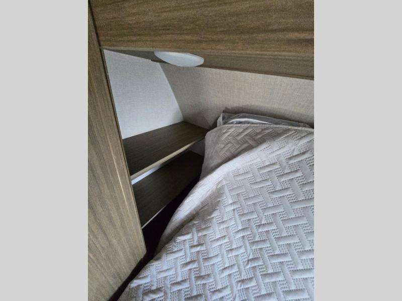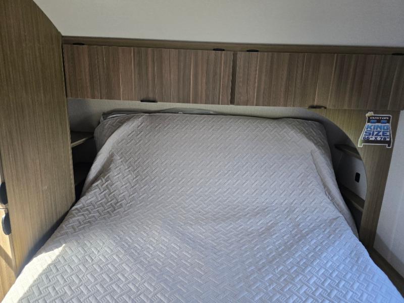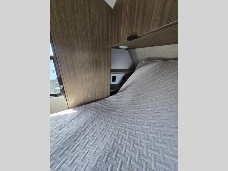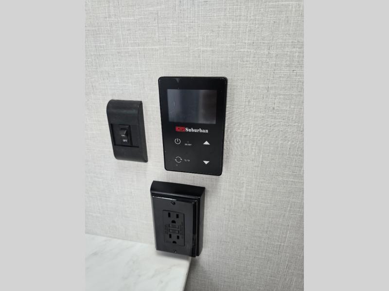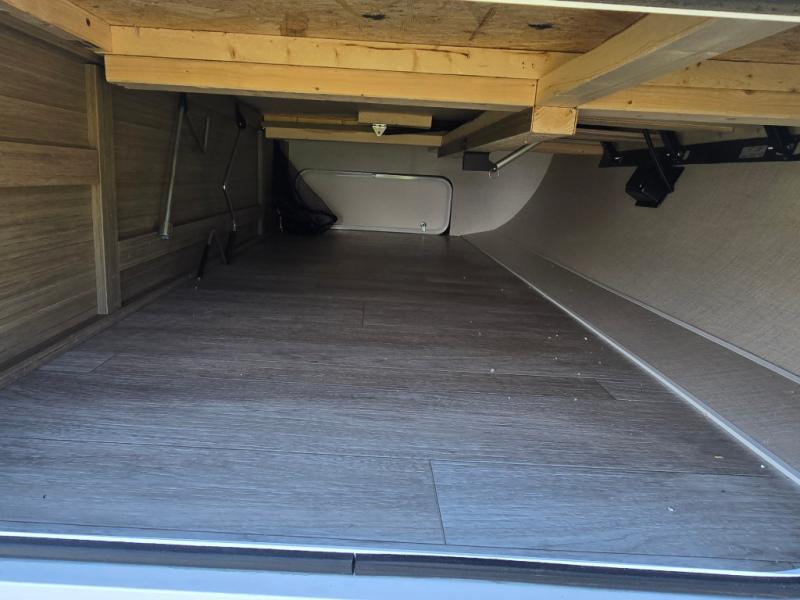 This travel trailer is packed full of features, but is still lightweight coming in at just over 5,000 lbs.! You will feel right at home in the front master bedroom with a custom king bed with Versa Tilt and a closet to keep your clothes tidy. The walk-through bathroom has a walk-in shower with fiberglass surround and a skylight above for added natural lighting as you get ready. The U-shaped dinette slide has a panoramic window for you to enjoy your beautiful scenery as you eat dinner, and there is a fireplace at the entertainment center for a relaxing evening indoors. There is a pass-through storage area to store your outdoor camping gear, and a 16' awning will provide shade as you're visiting outdoors.