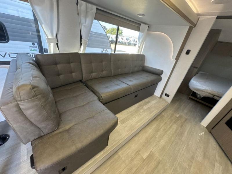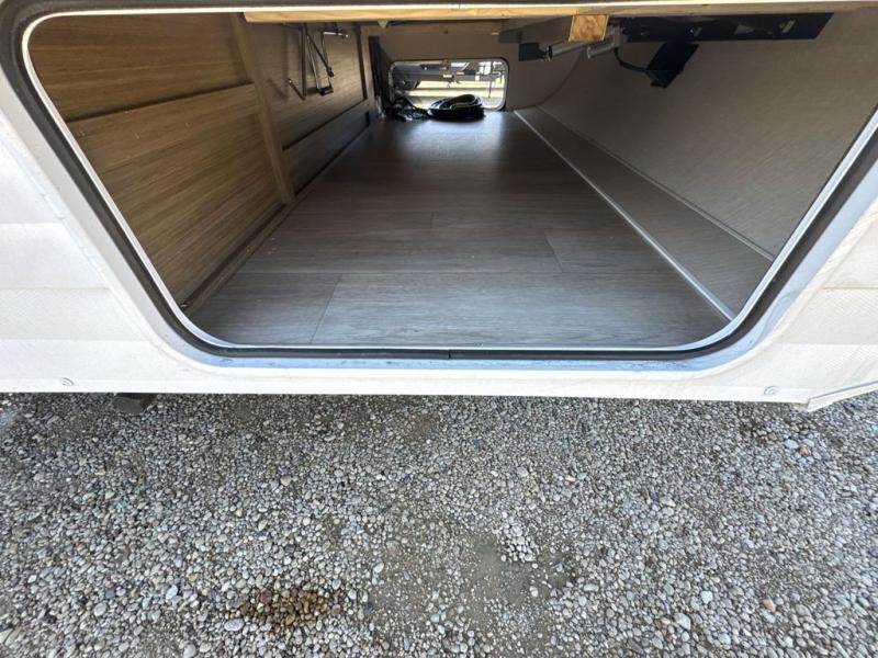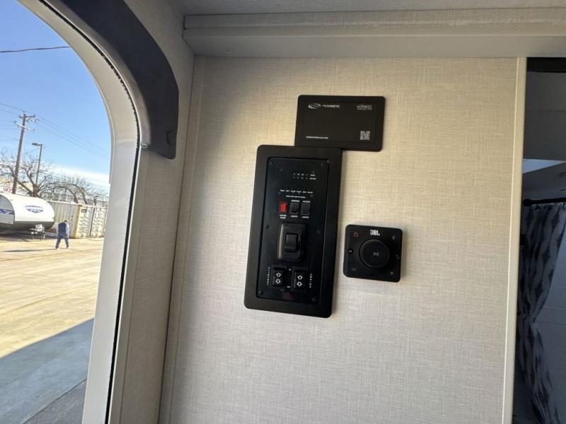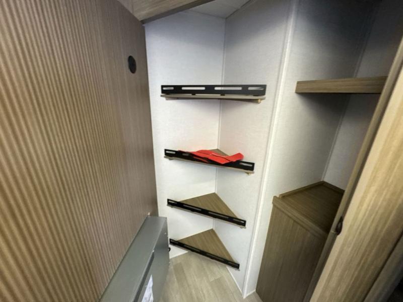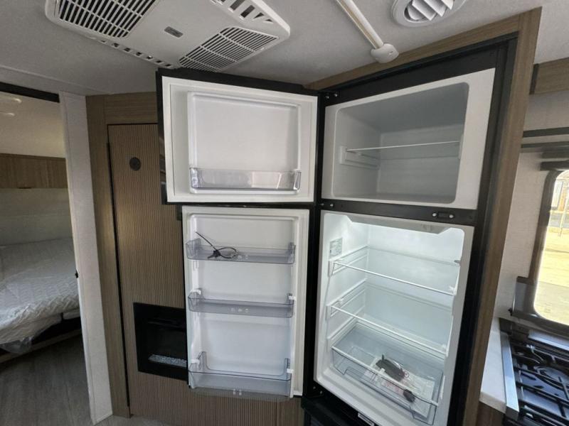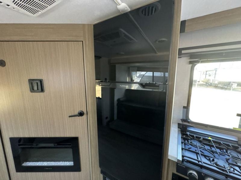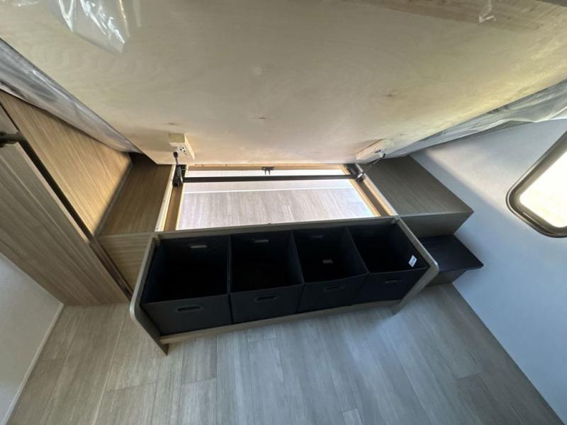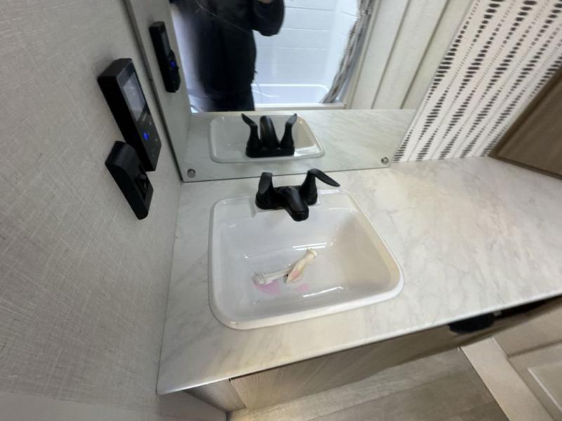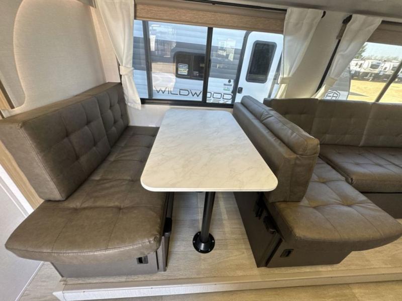 You're sure to make camping memories in this spacious travel trailer! You can sleep four to five people each night thanks to the the custom king bed with Versa Tilt in the front bedroom plus the Versa-Lounge and booth dinette within the large slide out! The full kitchen will let you make meals each day, and you'll appreciate the hidden pantry with shelves behind the fireplace. And don't overlook the full rear bath, complete with a tub/shower and ample counter space for your things.