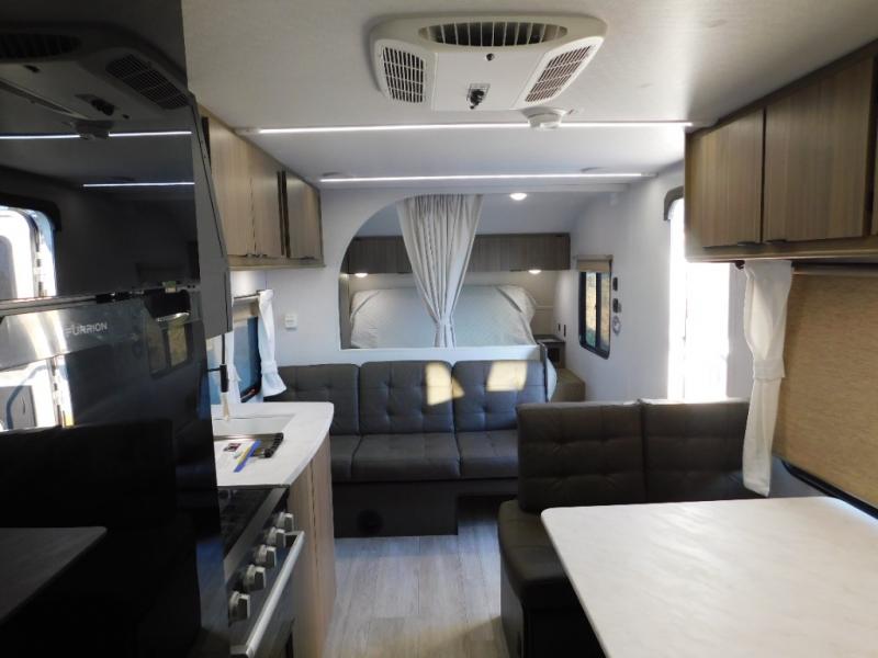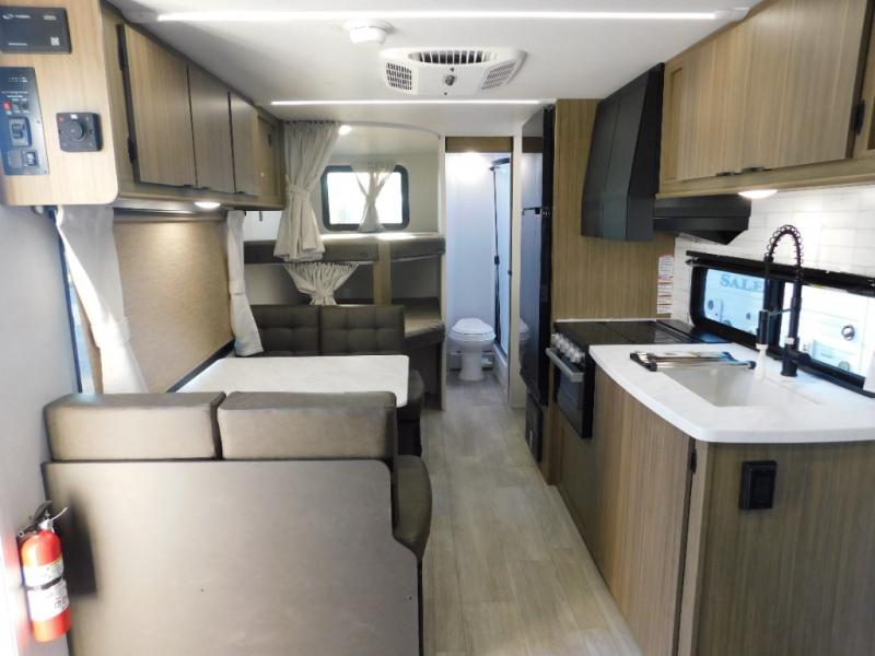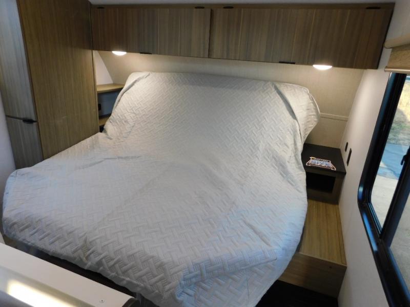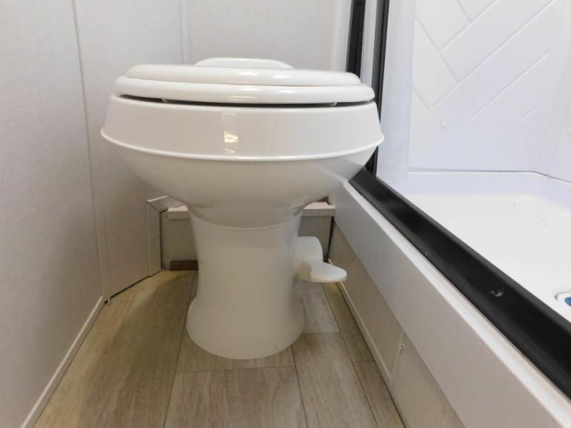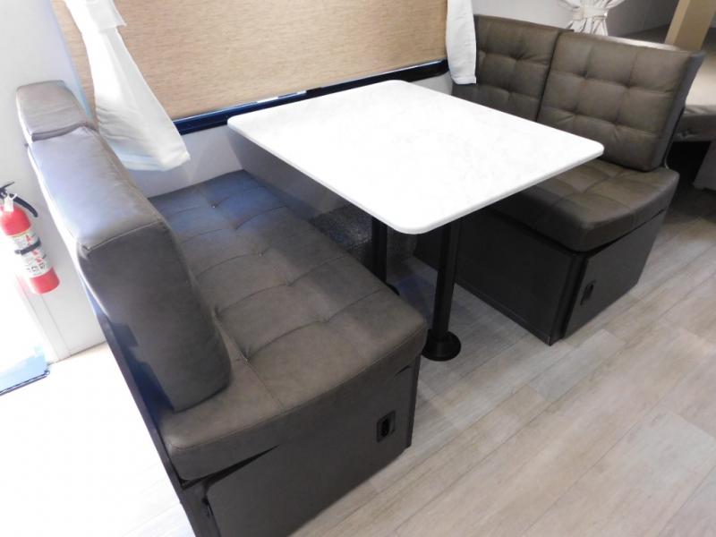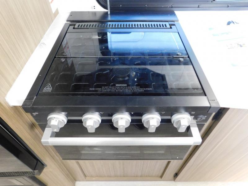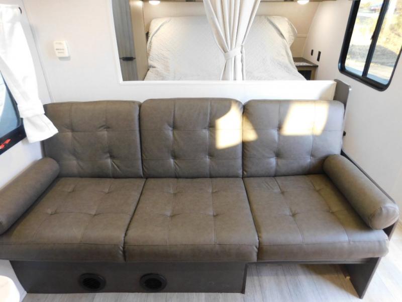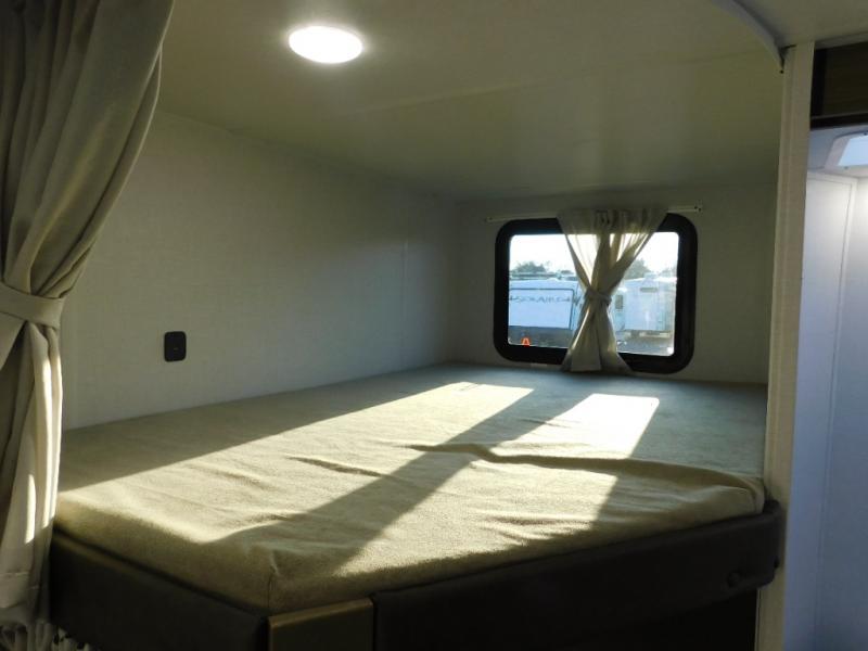 Load up this light weight travel trailer with double-size bunks and head to your favorite campsite! There is plenty of seating and sleeping spaces between the rear bunks, the custom king bed with Versa Tilt, the booth dinette, and the sofa. The front bed has closets on either side of it and a privacy curtain to draw at night. The oversized refrigerator will keep your perishables fresh and the three burner cooktop is just waiting for you to prepare a delicious home cooked meal. And you might want to add the optional outside kitchen for a sunrise breakfast!