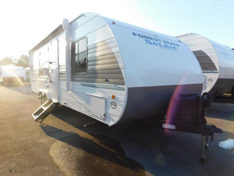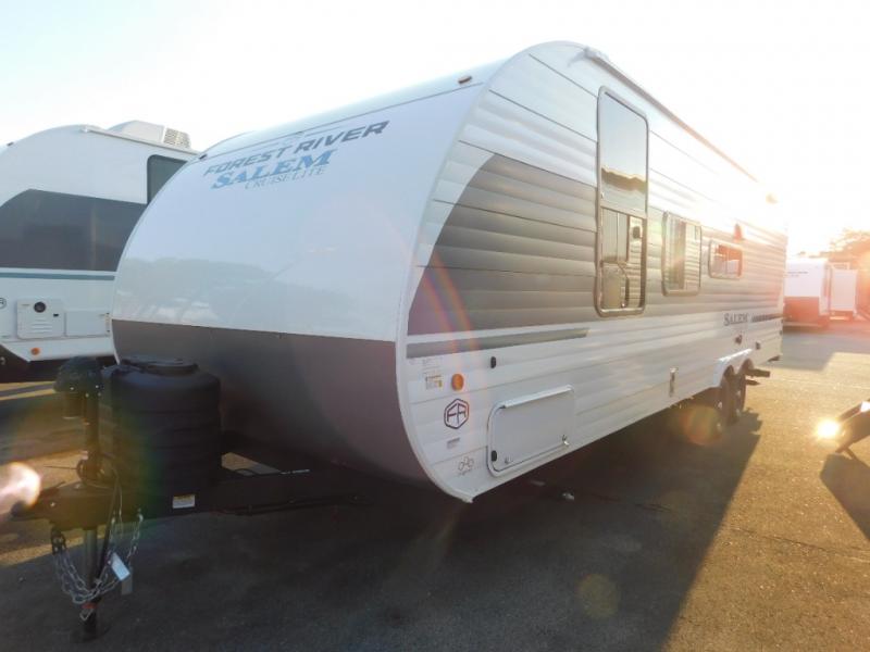 The Salem Cruise Lite travel trailers and toy haulers are value-minded units packed with great camping features! There are a variety of floorplans to choose from between three different regions. The enclosed Accessibelly will help protect against the elements and debris during transport, and the fiberglass exterior is sure to be eye-catching! There are stylish roller shades inside, along with updated backsplash, elegant curtain rods and curtains, plus many more interior comforts! Choose a Salem Cruise Lite today for quality and value!