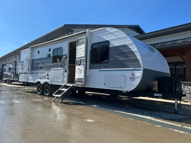 The Salem Cruise Lite travel trailers and toy haulers are value-minded units packed with great camping features! There are a variety of floorplans to choose from between three different regions. The enclosed Accessibelly will help protect against the elements and debris during transport, and the exterior retro/metal redesign is sure to be eye-catching! There are stylish roller shades inside, along with updated backsplash, elegant curtain rods and curtains, plus many more interior comforts! Choose a Salem Cruise Lite today for quality and value!