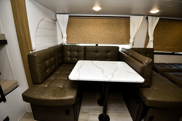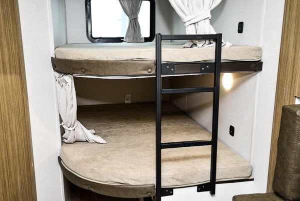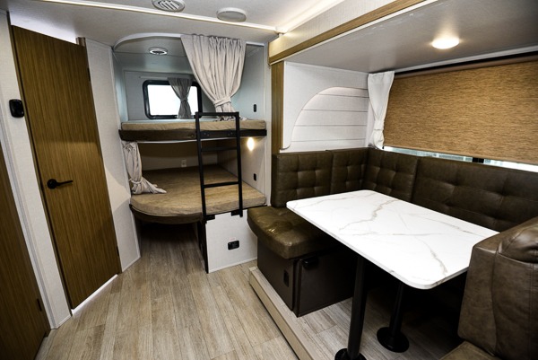 If you're looking for a travel trailer that will meet your family's needs then this one is for you! The kiddos will enjoy a good night's rest on the rear corner double-size bunk beds and you will enjoy a good night's rest on the custom king bed with Versa Tilt inside the front private bedroom. You can also transform the U-shaped dinette and Versa-lounge into extra sleeping spaces. One of the dual entrances leads directly into the rear corner bathroom which has a walk-in shower for you to get squeaky clean each morning. The walk-in pantry is big enough to store your favorite snacks and the oversized refrigerator will keep your beverages nice and cold. There is also an exterior camp kitchen you are sure to love!