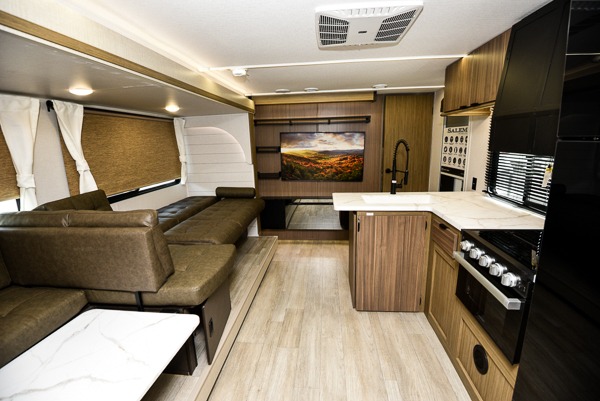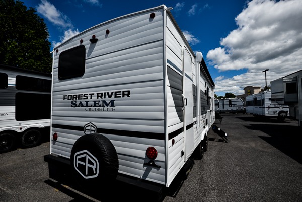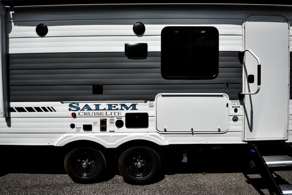 The Salem Cruise Lite travel trailers and toy haulers are value-minded units packed with great camping features! There are a variety of floorplans to choose from between three different regions. The enclosed Accessibelly will help protect against the elements and debris during transport, and the exterior retro/metal redesign is sure to be eye-catching! There are stylish roller shades inside, along with updated backsplash, elegant curtain rods and curtains, plus many more interior comforts! Choose a Salem Cruise Lite today for quality and value!