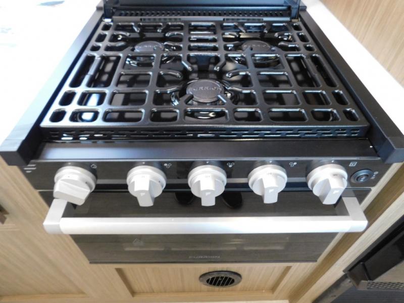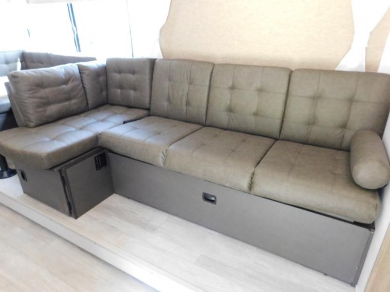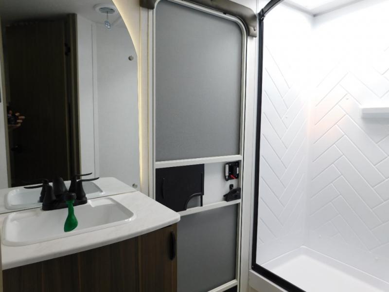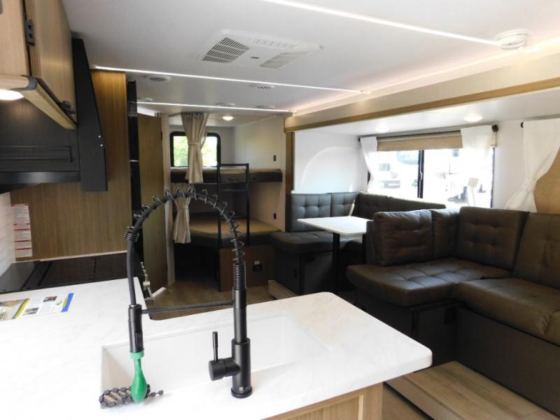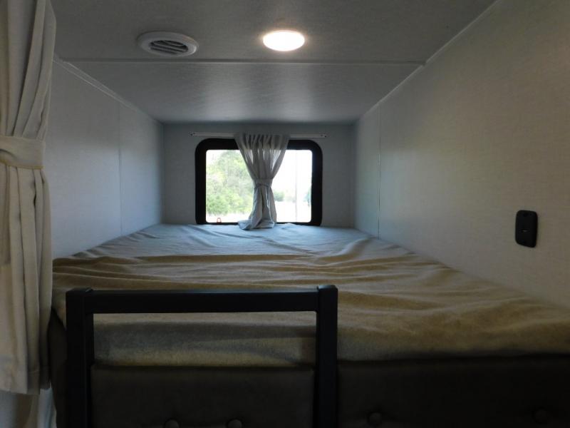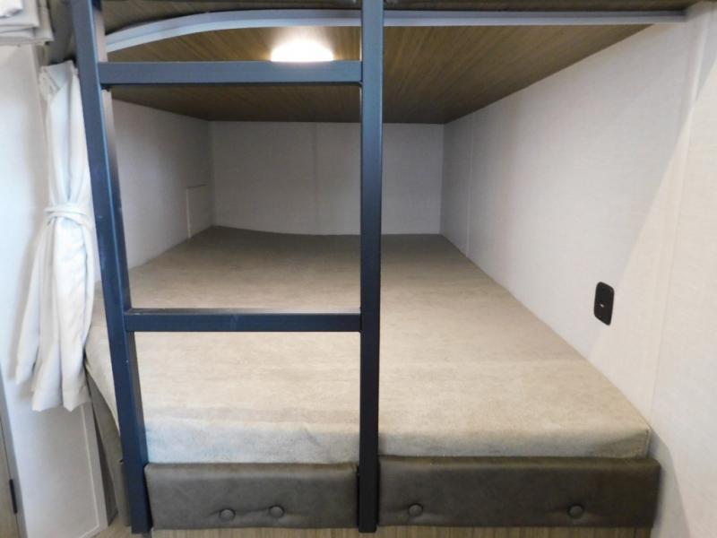 If you're looking for a travel trailer that will meet your family's needs then this one is for you! The kiddos will enjoy a good night's rest on the rear corner double-size bunk beds and you will enjoy a good night's rest on the custom king bed inside the front private bedroom. You can also transform the U-shaped dinette and Versa-lounge into extra sleeping spaces. One of the dual entrances leads directly into the rear corner bathroom which has a walk-in shower so you can get clean and refreshed each morning. The walk-in pantry is big enough to store your favorite snacks and the oversized refrigerator will keep your beverages nice and cold. There is also an exterior camp kitchen you are sure to love!
