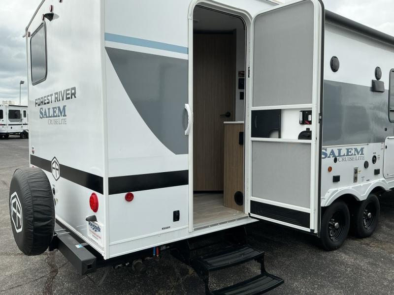 The Salem Cruise Lite travel trailers and toy haulers are value-minded units packed with great camping features! There are a variety of floorplans to choose from between two different regions. The enclosed Accessibelly will help protect against the elements and debris during transport, and the fiberglass exterior is sure to be eye-catching! There are stylish roller shades inside, along with updated backsplash, elegant curtain rods and curtains, plus many more interior comforts! Choose a Salem Cruise Lite today for quality and value!