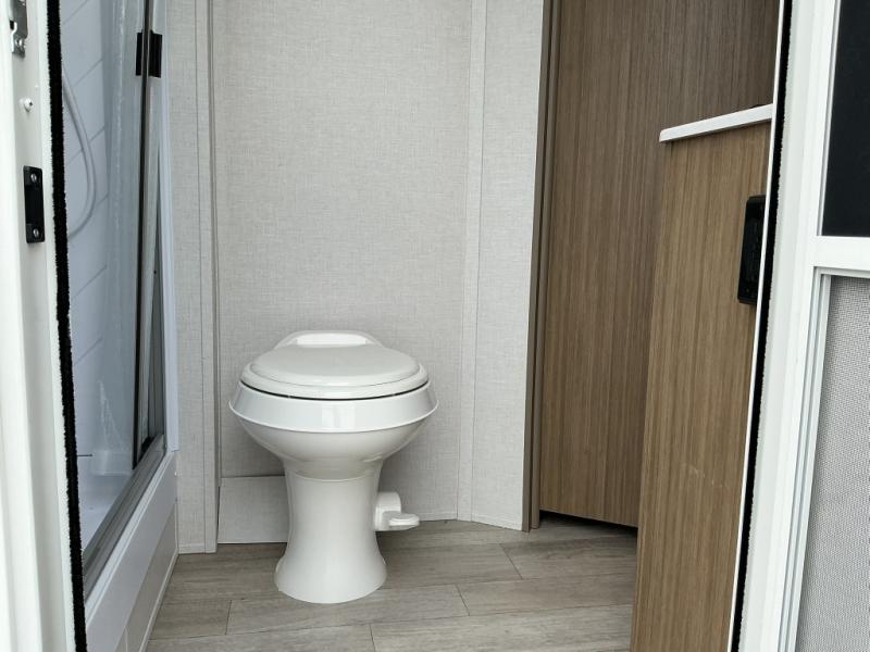 If you're looking for a travel trailer that will meet your family's needs then this one is for you! The kiddos will enjoy a good night's rest on the rear corner double-size bunk beds and you will enjoy a good night's rest on the custom king bed inside the front private bedroom. You can also transform the U-shaped dinette and Versa-lounge into extra sleeping spaces. One of the dual entrances leads directly into the rear corner bathroom which has a walk-in shower so you can get clean and refreshed each morning. The walk-in pantry is big enough to store your favorite snacks and the oversized refrigerator will keep your beverages nice and cold. There is also an exterior camp kitchen you are sure to love!