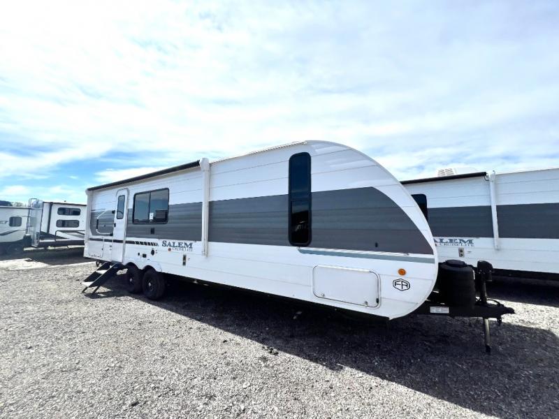 The Salem Cruise Lite travel trailers and toy haulers are value-minded units packed with great camping features! There are a variety of floorplans to choose from between three different regions. The enclosed Accessibelly will help protect against the elements and debris during transport, and the exterior retro/metal redesign is sure to be eye-catching! There are stylish roller shades inside, along with updated backsplash, elegant curtain rods and curtains, plus many more interior comforts! Choose a Salem Cruise Lite today for quality and value!