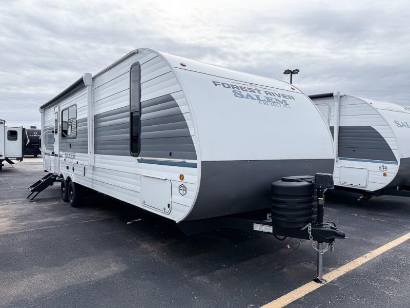 The Salem Cruise Lite travel trailers and toy haulers are value-minded units packed with great camping features! There are a variety of floorplans to choose from between two different regions. The enclosed Accessibelly will help protect against the elements and debris during transport, and the exterior retro/metal redesign is sure to be eye-catching! There are stylish roller shades inside, along with updated backsplash, elegant curtain rods and curtains, plus many more interior comforts! Choose a Salem Cruise Lite today for quality and value!