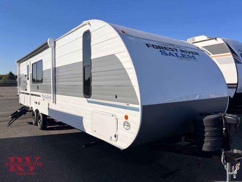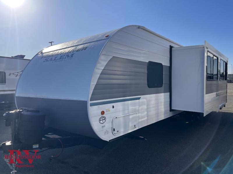 The Salem Cruise Lite travel trailers and toy haulers are value-minded units packed with great camping features! There are a variety of floorplans to choose from between two different regions. The enclosed Accessibelly will help protect against the elements and debris during transport, and the exterior retro/metal redesign is sure to be eye-catching! There are stylish roller shades inside, along with updated backsplash, elegant curtain rods and curtains, plus many more interior comforts! Choose a Salem Cruise Lite today for quality and value!