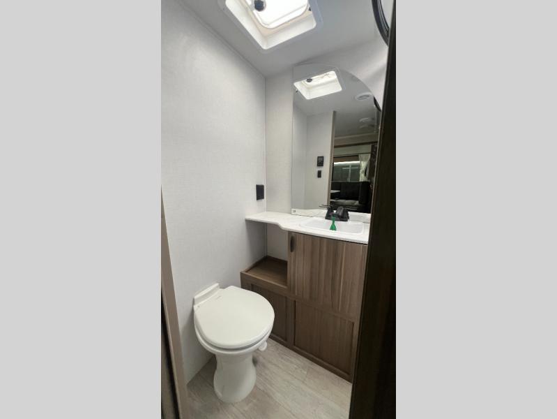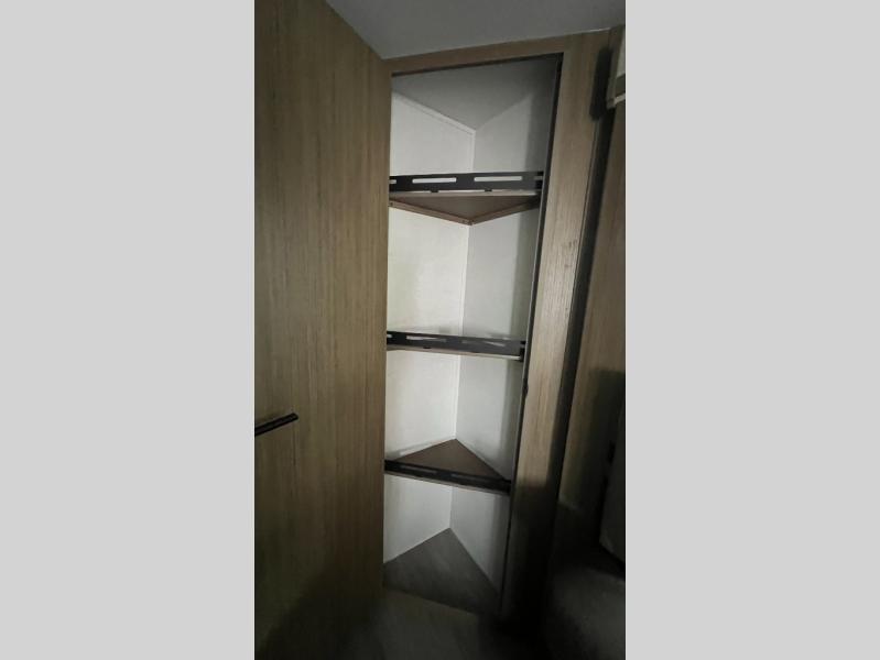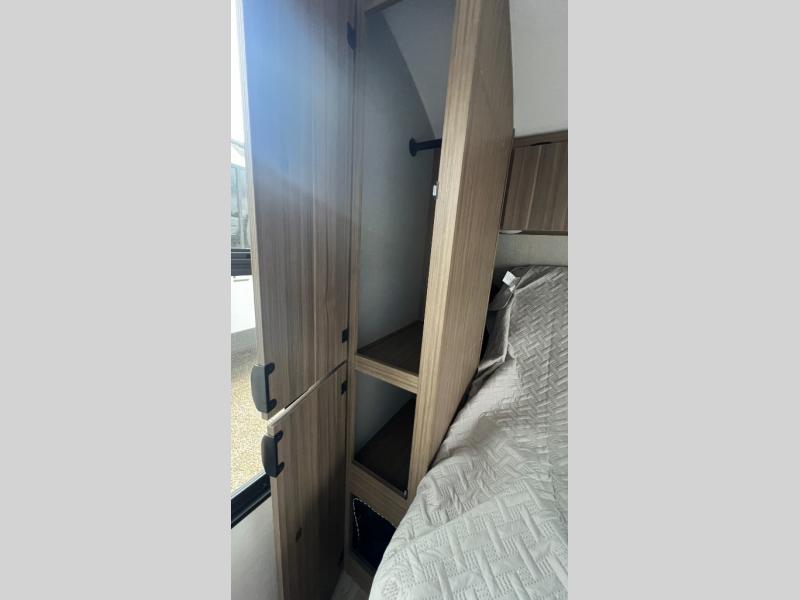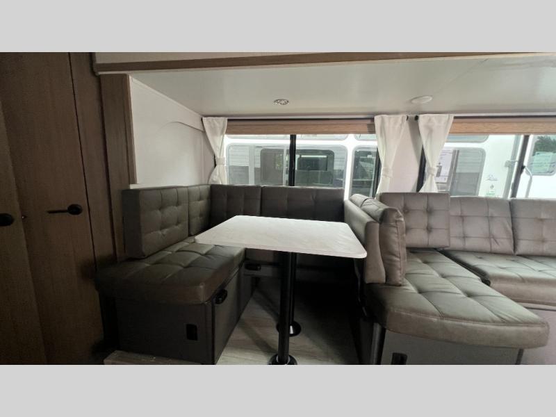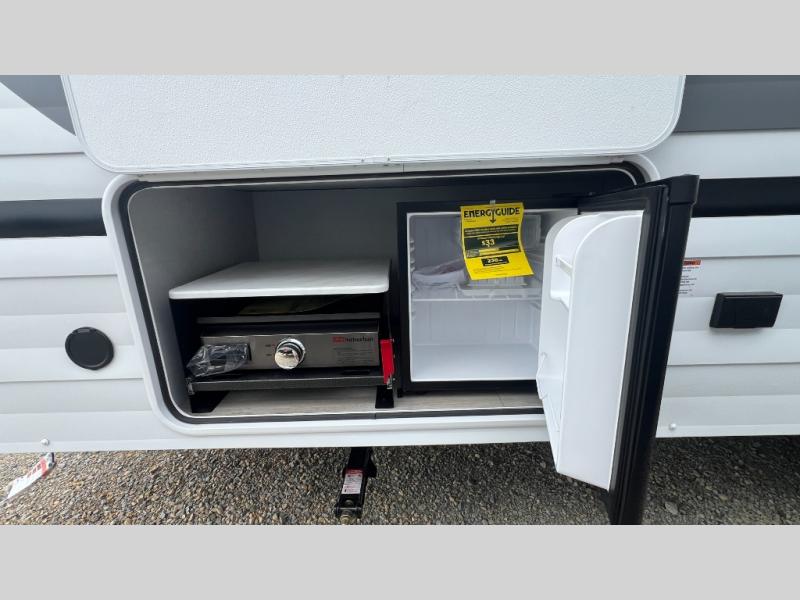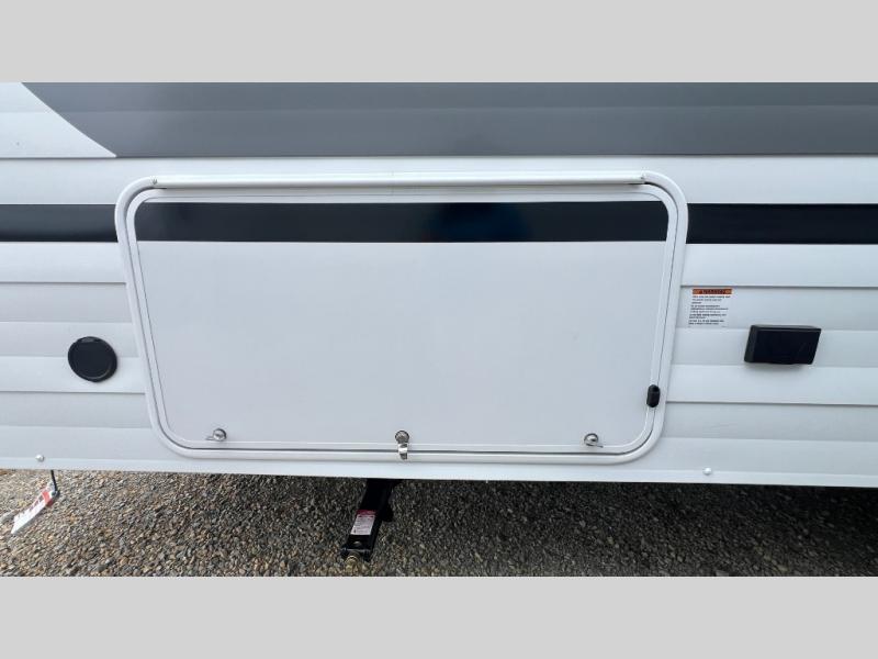 This versatile bunkhouse travel trailer is big enough for the whole family! The private bunkhouse has a set of 30" x 74" bunk beds and a 30" x 74" bunk bed above a Jiffy sofa. Just outside the bunkhouse is a pantry big enough to store everyone's favorite snacks, and a full bathroom with a walk-in shower. The cooktop is just waiting for you to create a delicious meal, and the U-shaped dinette welcomes everyone to enjoy each meal in comfort, plus there is a large panoramic window for a perfect view of your surroundings. Any time of day kick back on the Versa-lounge and relax by the fireplace at the entertainment center. The exterior features a pass-through storage area for you to keep your outdoor camping gear stowed away when not in use, a 16' awning to protect you, and an exterior camp kitchen!