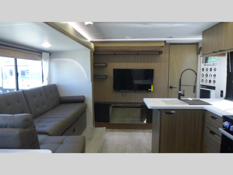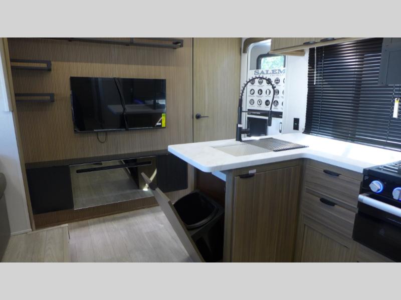 The Salem Cruise Lite travel trailers and toy haulers are value-minded units packed with great camping features! There are a variety of floorplans to choose from between two different regions. The enclosed Accessibelly will help protect against the elements and debris during transport, and the exterior retro/metal redesign is sure to be eye-catching! There are stylish roller shades inside, along with updated backsplash, elegant curtain rods and curtains, plus many more interior comforts! Choose a Salem Cruise Lite today for quality and value!