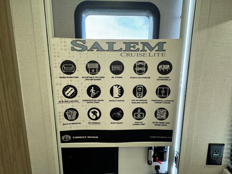 The Salem Cruise Lite travel trailers and toy haulers are value-minded units packed with great camping features! There are a variety of floorplans to choose from between three different regions. The enclosed Accessibelly will help protect against the elements and debris during transport, and the exterior retro/metal redesign is sure to be eye-catching! There are stylish roller shades inside, along with updated backsplash, elegant curtain rods and curtains, plus many more interior comforts! Choose a Salem Cruise Lite today for quality and value!