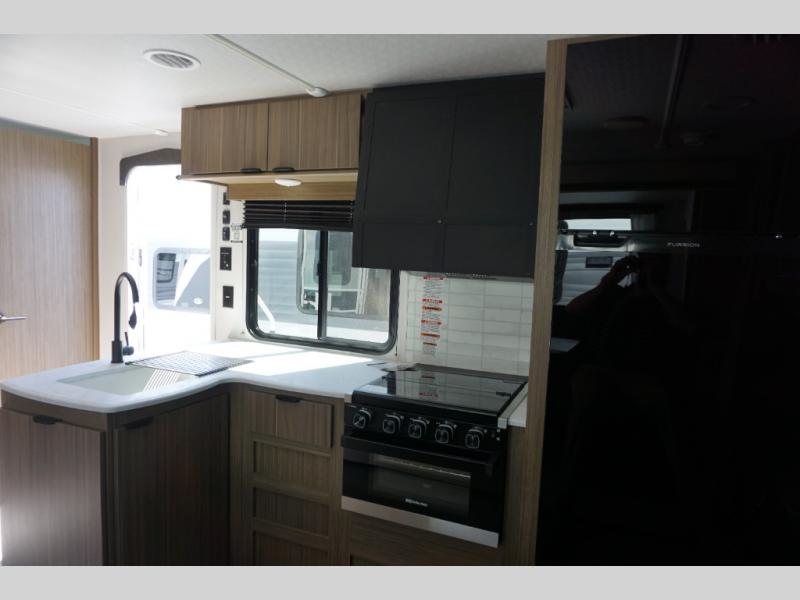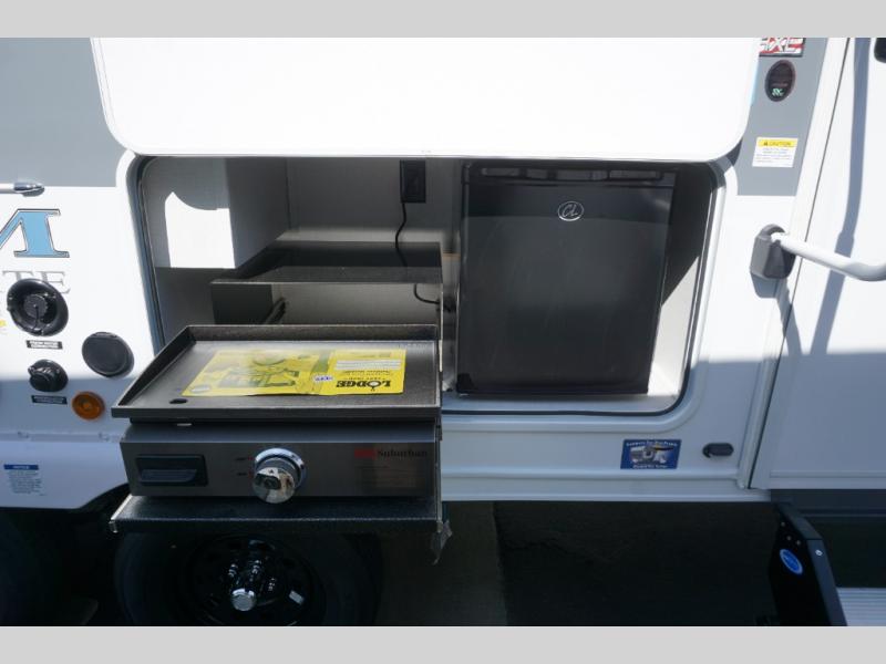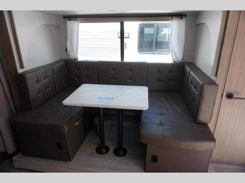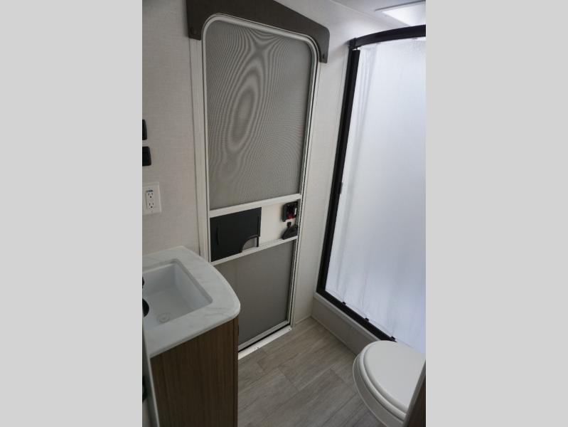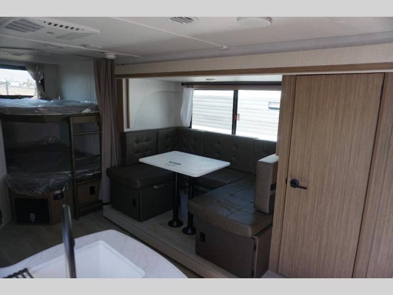 Your whole crew will love this spacious travel trailer that can sleep eight each night. There are double-size bunks for the little ones, a custom king bed in the front private bedroom, plus a Versa U-dinette within the large slide out for more guests to sleep. You'll also find the walk-in pantry in the slide out that can hold dry goods for the week, and the full bath includes its own exterior entry door for convenience. Cook indoors on the three burner cooktop or head outdoors to cook on the exterior camp kitchen!