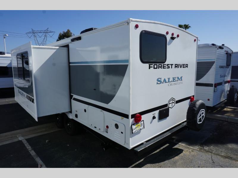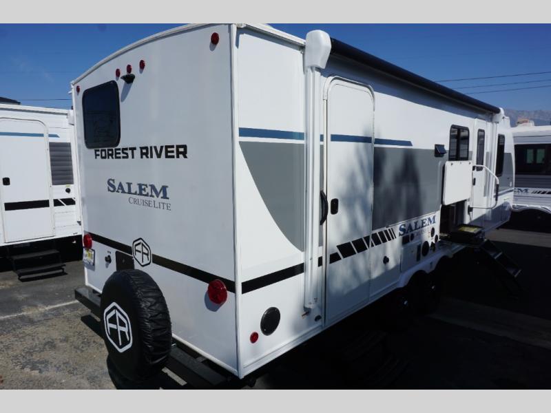 The Salem Cruise Lite travel trailers and toy haulers are value-minded units packed with great camping features! There are a variety of floorplans to choose from between three different regions. The enclosed Accessibelly will help protect against the elements and debris during transport, and the exterior retro/metal redesign is sure to be eye-catching! There are stylish roller shades inside, along with updated backsplash, elegant curtain rods and curtains, plus many more interior comforts! Choose a Salem Cruise Lite today for quality and value!