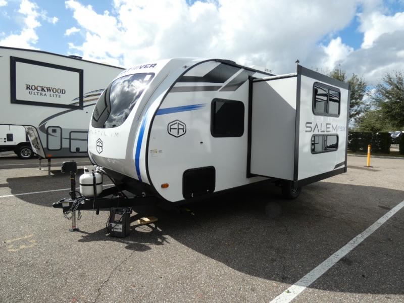 The Forest River Salem FSX travel trailers and toy hauler travel trailers are ultra comfortable and lightweight, perfect for first time or seasoned campers alike! You will love how easy it will be to relax with residential features that will make your space feel just like home, and the durable construction means you can enjoy your RV for years to come. There are a wide variety of floorplans to choose from, including couple's trailers, bunk models, and toy haulers, all with full bath and kitchen amenities and plenty of storage for all your gear!