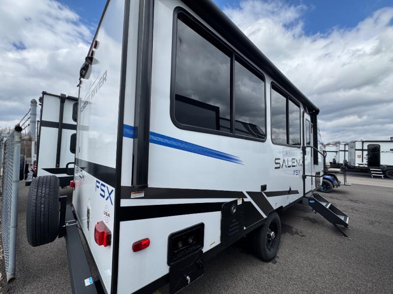 The Forest River Salem FSX travel trailers and toy hauler travel trailers are ultra comfortable and lightweight, perfect for first time or seasoned campers alike! You will love how easy it will be to relax with residential features that will make your space feel just like home, and the durable construction means you can enjoy your RV for years to come. There are a wide variety of floorplans to choose from, including couple's trailers, bunk models, and toy haulers, all with full bath and kitchen amenities and plenty of storage for all your gear!