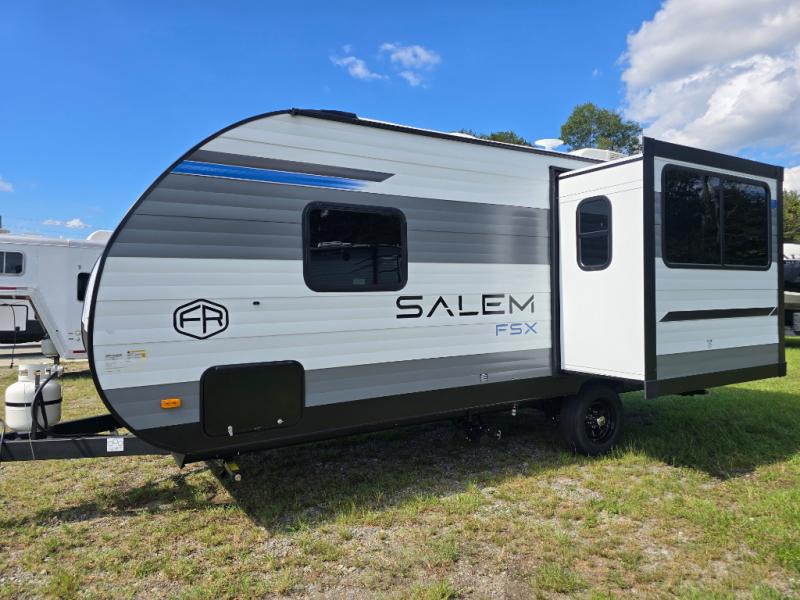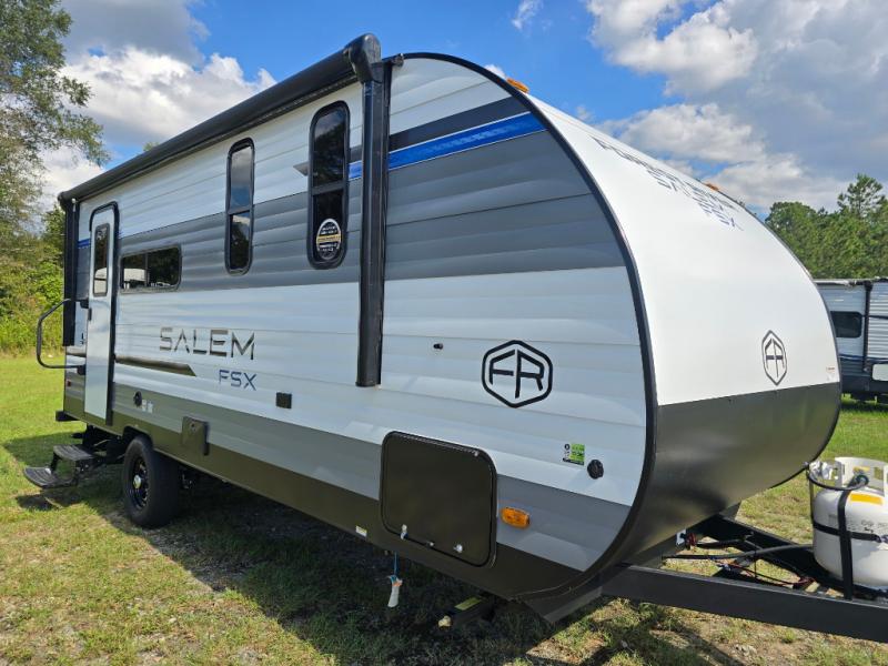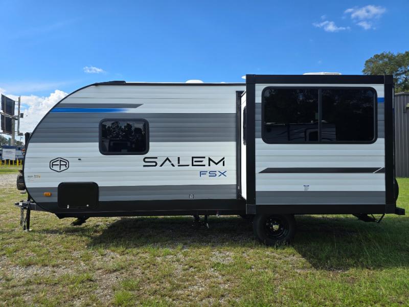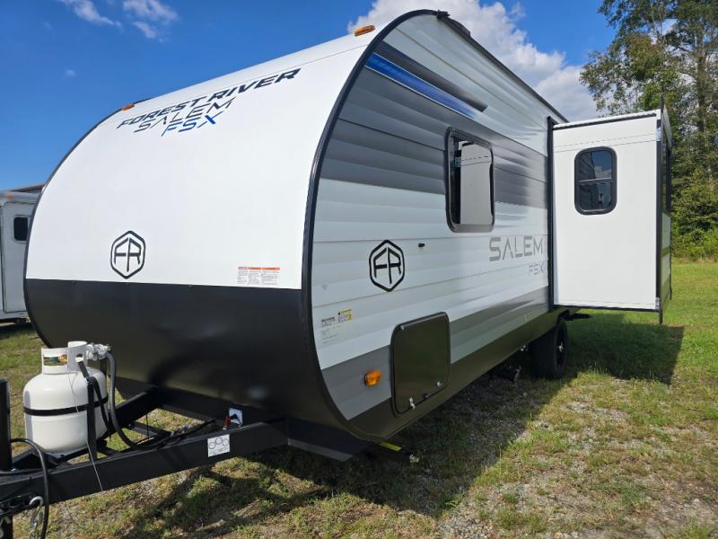 The Forest River Salem FSX travel trailers and toy hauler travel trailers are ultra comfortable and lightweight, perfect for first time or seasoned campers alike! You will love how easy it will be to relax with residential features that will make your space feel just like home, and the durable construction means you can enjoy your RV for years to come. There are a wide variety of floorplans to choose from, including couple's trailers, bunk models, and toy haulers, all with full bath and kitchen amenities and plenty of storage for all your gear!
