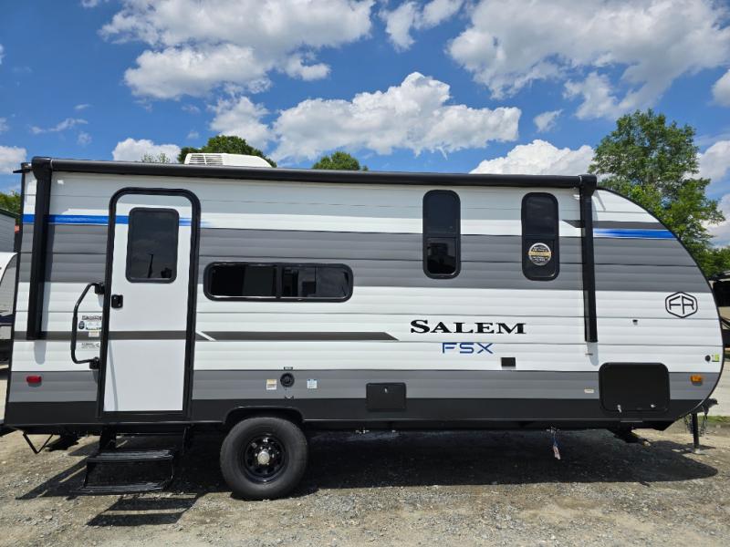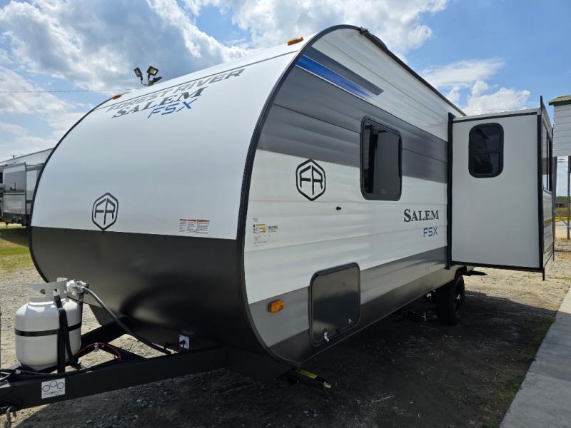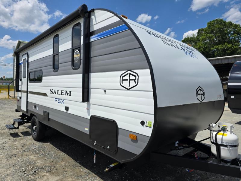 The Forest River Salem FSX travel trailers and toy hauler travel trailers are ultra comfortable and lightweight, perfect for first time or seasoned campers alike! You will love how easy it will be to relax with residential features that will make your space feel just like home, and the durable construction means you can enjoy your RV for years to come. There are a wide variety of floorplans to choose from, including couple's trailers, bunk models, and toy haulers, all with full bath and kitchen amenities and plenty of storage for all your gear!