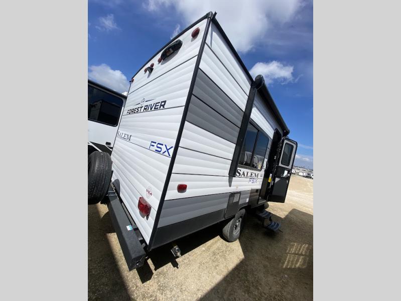The Forest River Salem FSX travel trailers and toy hauler travel trailers are ultra comfortable and lightweight, perfect for first time or seasoned campers alike! You will love how easy it will be to relax with residential features that will make your space feel just like home, and the durable construction means you can enjoy your RV for years to come. There are a wide variety of floorplans to choose from, including couple's trailers, bunk models, and toy haulers, all with full bath and kitchen amenities and plenty of storage for all your gear!