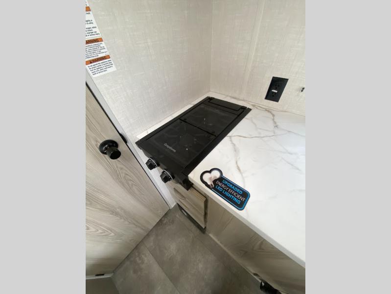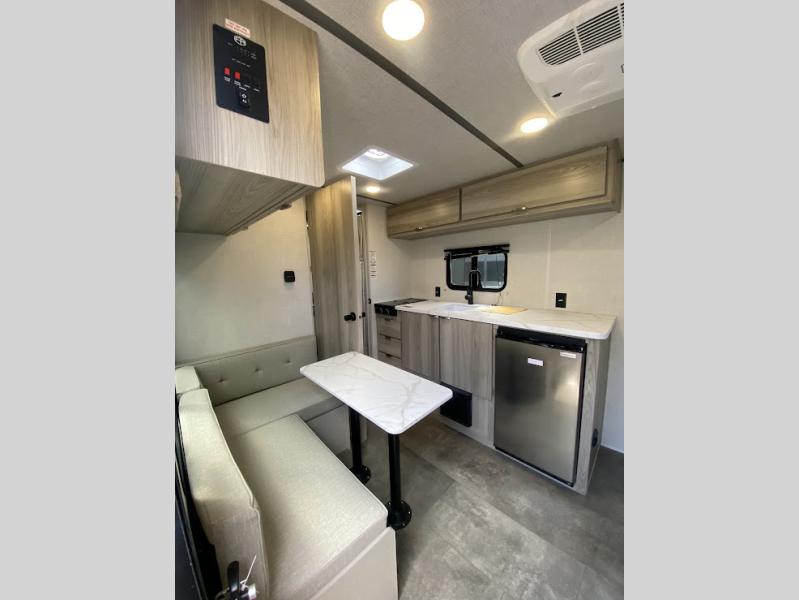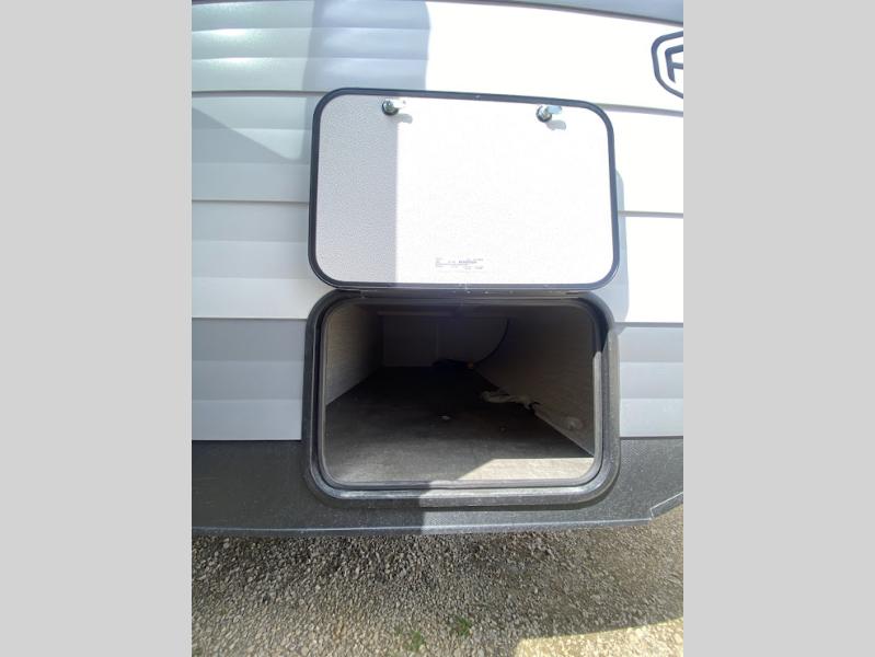 This Limited Edition Salem FSX travel trailer is the perfect couples unit or to camp solo! Included you will find a front queen bed with dual wardrobes, and an open lounge with a table where you can dine. The exterior storage has an oversized door for storage so you can fit those bigger items, and you'll appreciate the 8' 12V power awning to give you some shade. The Limited Edition Camp Ready package includes a backup camera prep, a powder coated I-beam chassis for towing durability, roof vents for airflow and natural light, plus more!