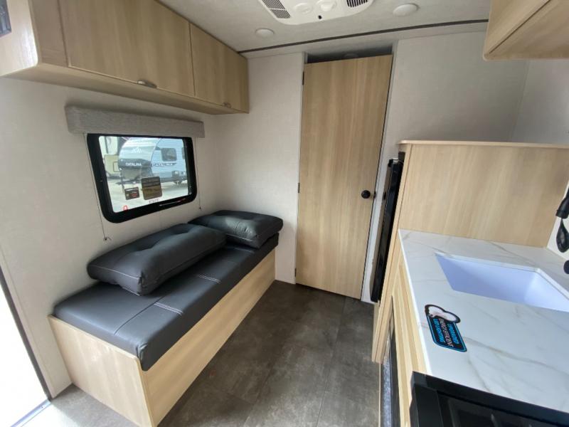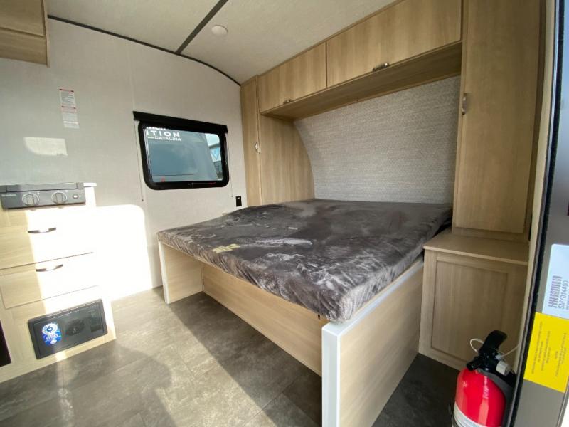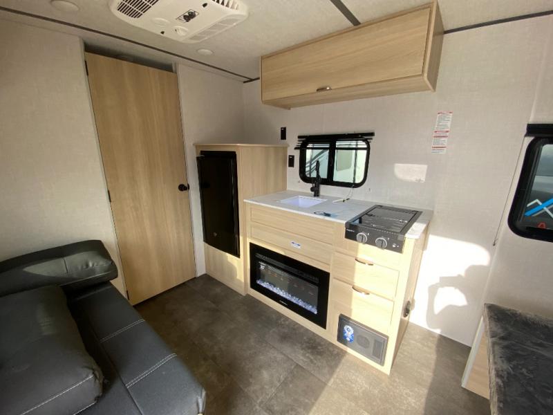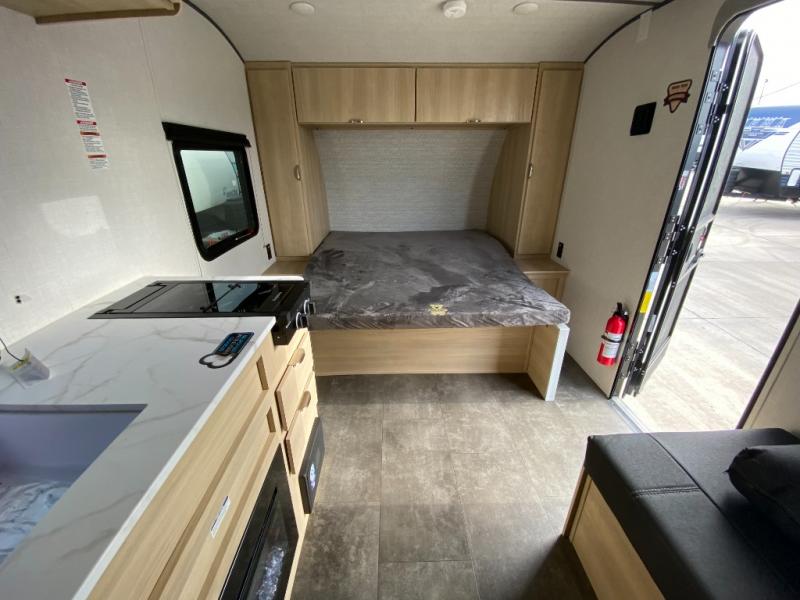 This Limited Edition Salem FSX travel trailer is the perfect couples unit! Included you will find a front queen bed with dual wardrobes, and a sofa with overhead storage for seating. Extra thick luxury vinyl flooring is comfortable underfoot and easy to keep clean. The exterior storage has an oversized door for storage so you can fit those bigger items. The Limited Edition Camp Ready package includes a two-burner cooktop with glass stove cover, a microwave oven, roof vents for adequate air flow, a 20 lb. LP bottle, and more.