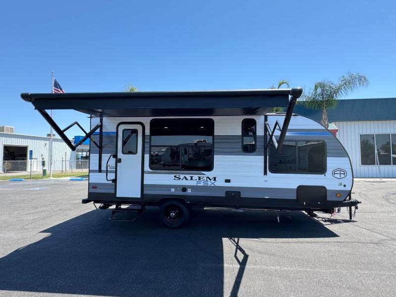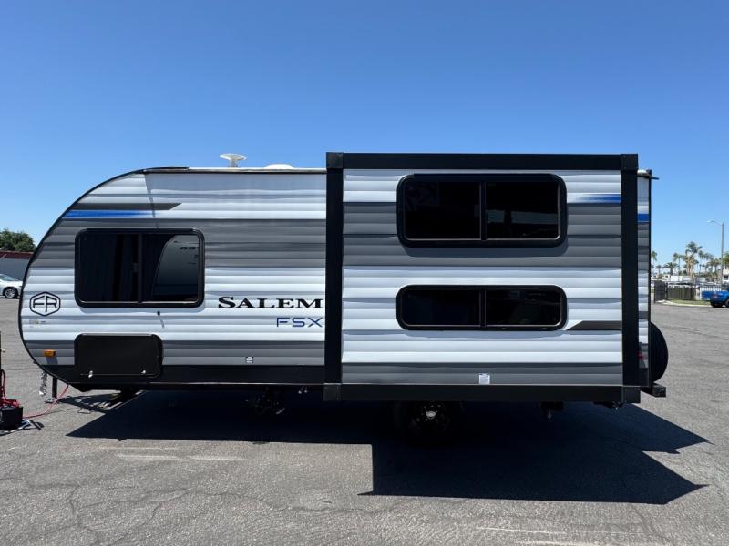 The Forest River Salem FSX travel trailers and toy hauler travel trailers are ultra comfortable and lightweight, perfect for first time or seasoned campers alike! You will love how easy it will be to relax with residential features that will make your space feel just like home, and the durable construction means you can enjoy your RV for years to come. There are a wide variety of floorplans to choose from, including couple's trailers, bunk models, and toy haulers, all with full bath and kitchen amenities and plenty of storage for all your gear!