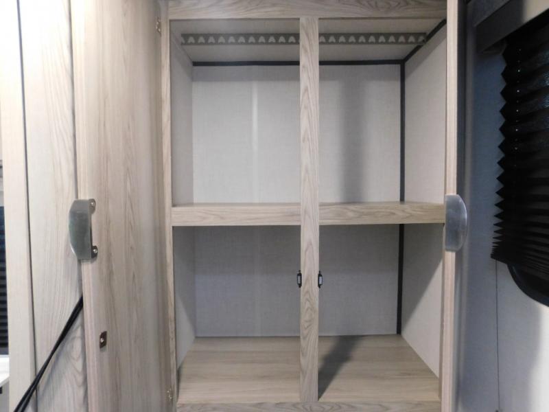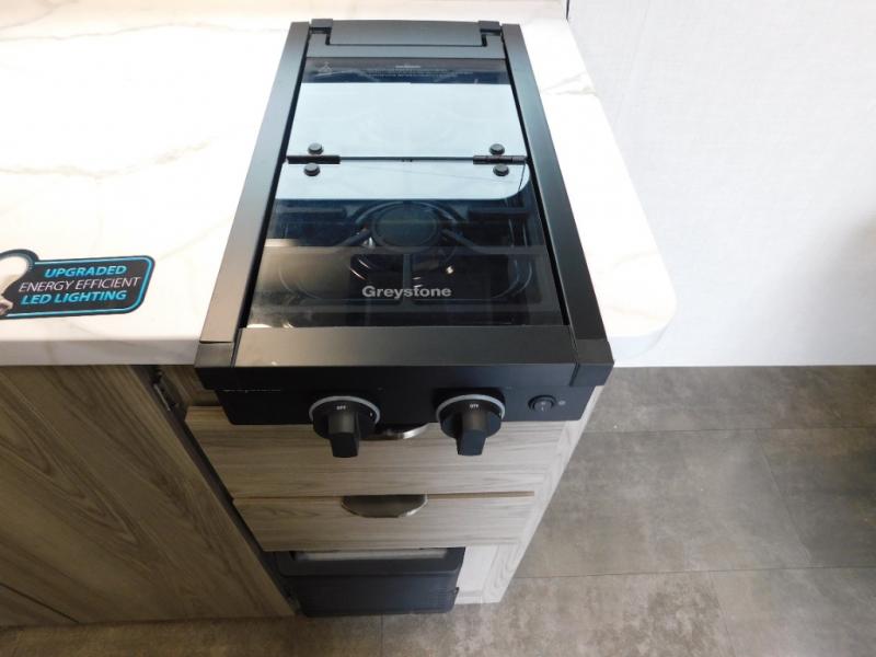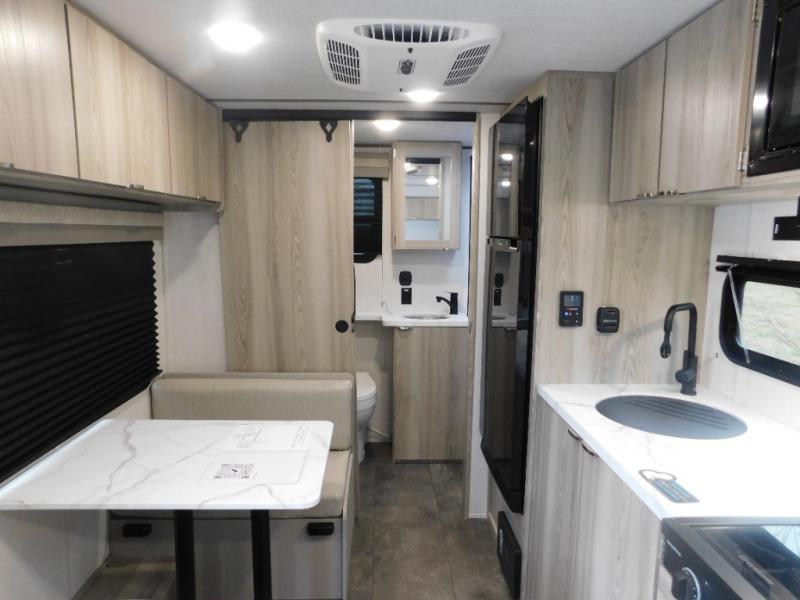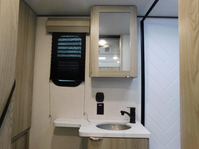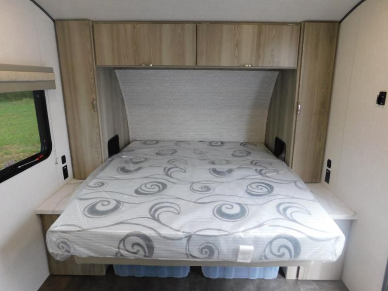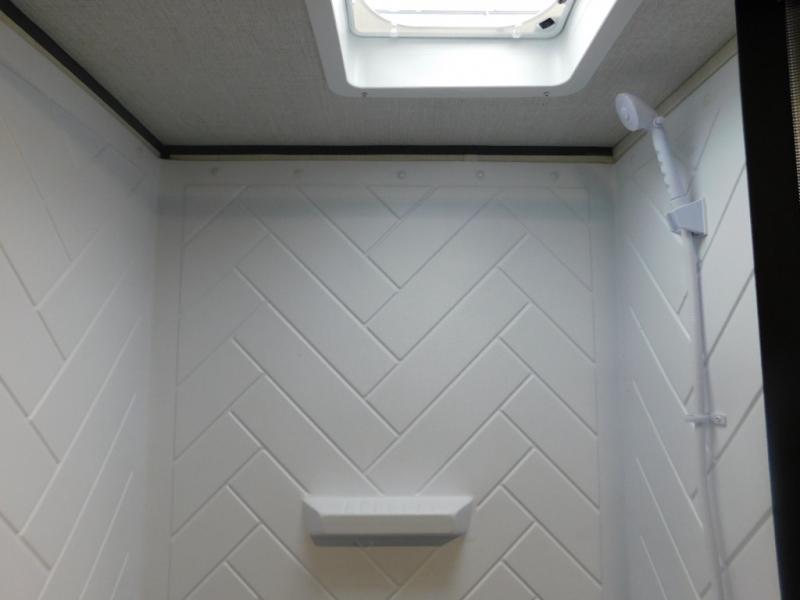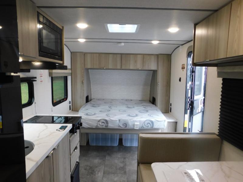 This compact travel trailer may only be 3,000 lbs. but it is still feature-packed! The front Murphy bed has a queen bed to sleep on at night and a sofa with storage access to sit on during the day. Grab some eggs from the 11 cu. ft. frost free refrigerator then fry them up on the two burner cooktop and enjoy them at the booth dinette with a large window to look out at your beautiful scenery. Freshen up each morning in the full rear bathroom with the shower with a skylight and keep the dirt outside where it belongs with the outside shower with hot and cold water. You will also enjoy the 12' power awning with LED lights that will allow you to visit outdoors each evening!