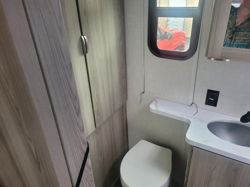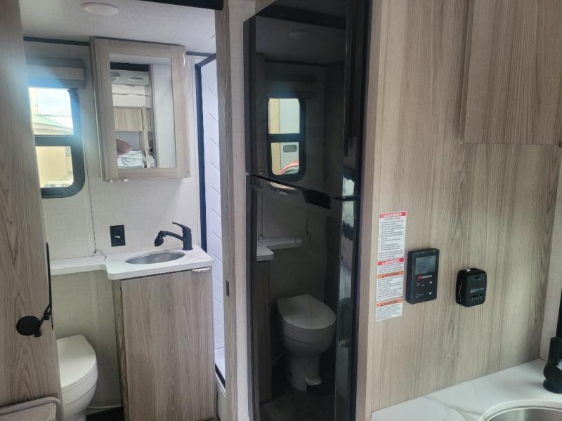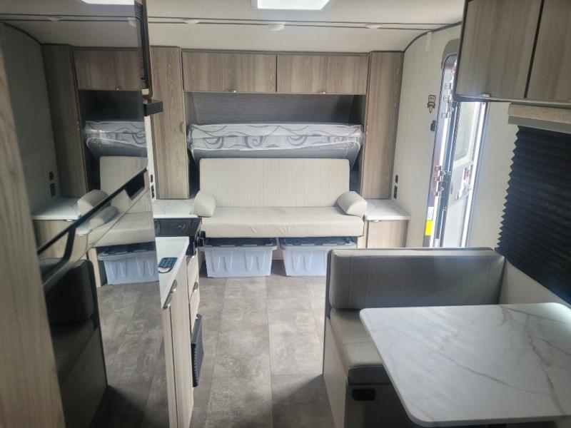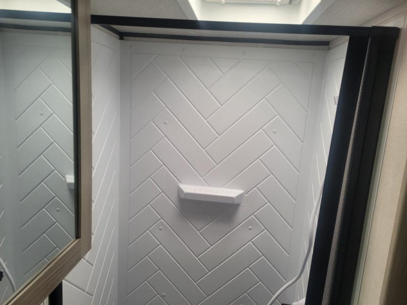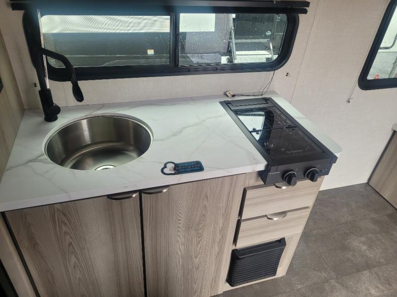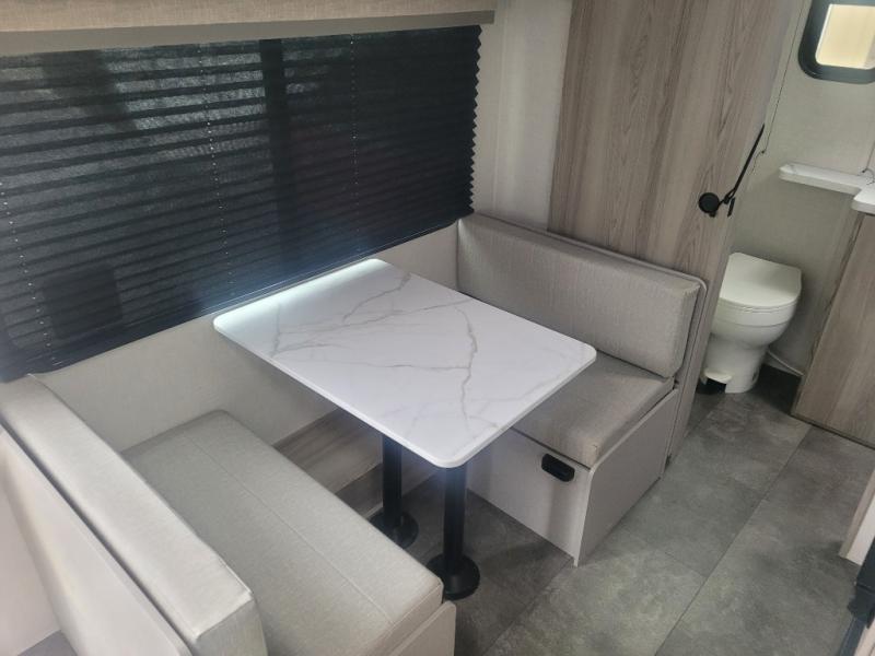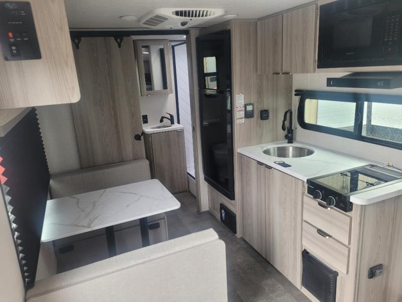 This compact travel trailer may only be 3,000 lbs. but it is still feature-packed! The front Murphy bed has a queen bed to sleep on at night and a sofa with storage access to sit on during the day. Grab some eggs from the 11 cu. ft. frost free refrigerator then fry them up on the two burner cooktop and enjoy them at the booth dinette with a large window to look out at your beautiful scenery. Freshen up each morning in the full rear bathroom with the shower with a skylight and keep the dirt outside where it belongs with the outside shower with hot and cold water. You will also enjoy the 12' power awning with LED lights that will allow you to visit outdoors each evening!