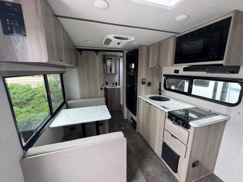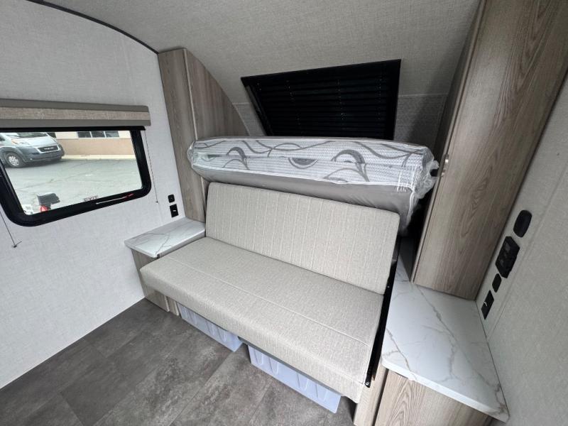 This compact travel trailer may only be 3,000 lbs. but it is still feature-packed! The front Murphy bed has a queen bed to sleep on at night and a sofa with storage access to sit on during the day. Grab some eggs from the 11 cu. ft. frost free refrigerator then fry them up on the two burner cooktop and enjoy them at the booth dinette with a large window to look out at your beautiful scenery. Freshen up each morning in the full rear bathroom with the shower with a skylight and keep the dirt outside where it belongs with the outside shower with hot and cold water. You will also enjoy the 12' power awning with LED lights that will allow you to visit outdoors each evening!
