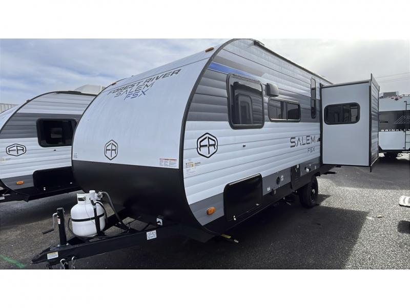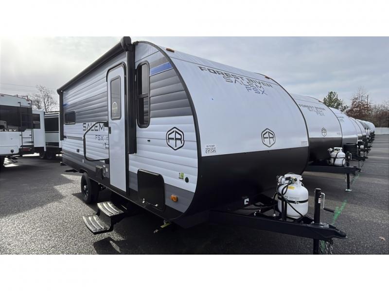 The Forest River Salem FSX travel trailers and toy hauler travel trailers are ultra comfortable and lightweight, perfect for first time or seasoned campers alike! You will love how easy it will be to relax with residential features that will make your space feel just like home, and the durable construction means you can enjoy your RV for years to come. There are a wide variety of floorplans to choose from, including couple's trailers, bunk models, and toy haulers, all with full bath and kitchen amenities and plenty of storage for all your gear!