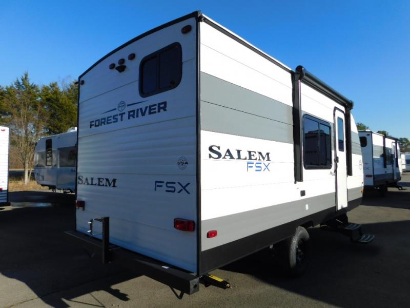 The Forest River Salem FSX travel trailers and toy hauler travel trailers are ultra comfortable and lightweight, perfect for first time or seasoned campers alike! You will love how easy it will be to relax with residential features that will make your space feel just like home, and the durable construction means you can enjoy your RV for years to come. There are a wide variety of floorplans to choose from, including couple's trailers, bunk models, and toy haulers, all with full bath and kitchen amenities and plenty of storage for all your gear!