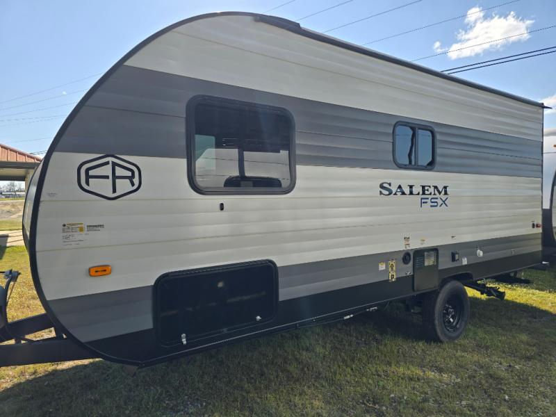 The Forest River Salem FSX travel trailers and toy hauler travel trailers are ultra comfortable and lightweight, perfect for first time or seasoned campers alike! You will love how easy it will be to relax with residential features that will make your space feel just like home, and the durable construction means you can enjoy your RV for years to come. There are a wide variety of floorplans to choose from, including couple's trailers, bunk models, and toy haulers, all with full bath and kitchen amenities and plenty of storage for all your gear!