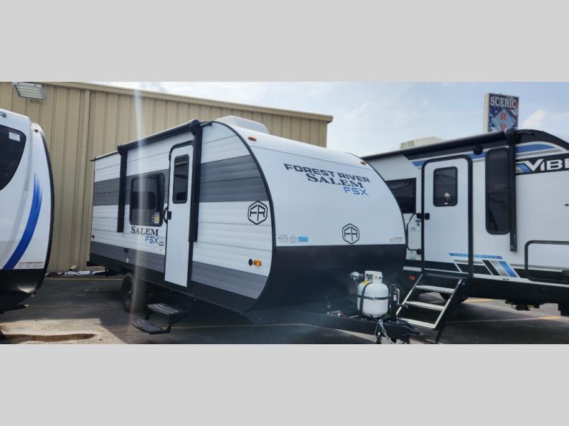 The Forest River Salem FSX travel trailers and toy hauler travel trailers are ultra comfortable and lightweight, perfect for first time or seasoned campers alike! You will love how easy it will be to relax with residential features that will make your space feel just like home, and the durable construction means you can enjoy your RV for years to come. There are a wide variety of floorplans to choose from, including couple's trailers, bunk models, and toy haulers, all with full bath and kitchen amenities and plenty of storage for all your gear!