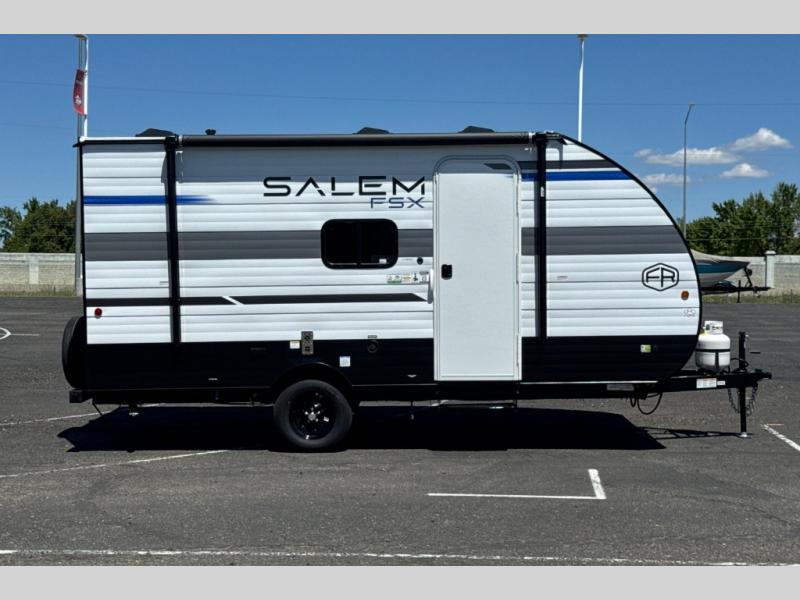 The Forest River Salem FSX travel trailers and toy hauler travel trailers are ultra comfortable and lightweight, perfect for first time or seasoned campers alike! You will love how easy it will be to relax with residential features that will make your space feel just like home, and the durable construction means you can enjoy your RV for years to come. There are a wide variety of floorplans to choose from, including couple's trailers, bunk models, and toy haulers, all with full bath and kitchen amenities and plenty of storage for all your gear!