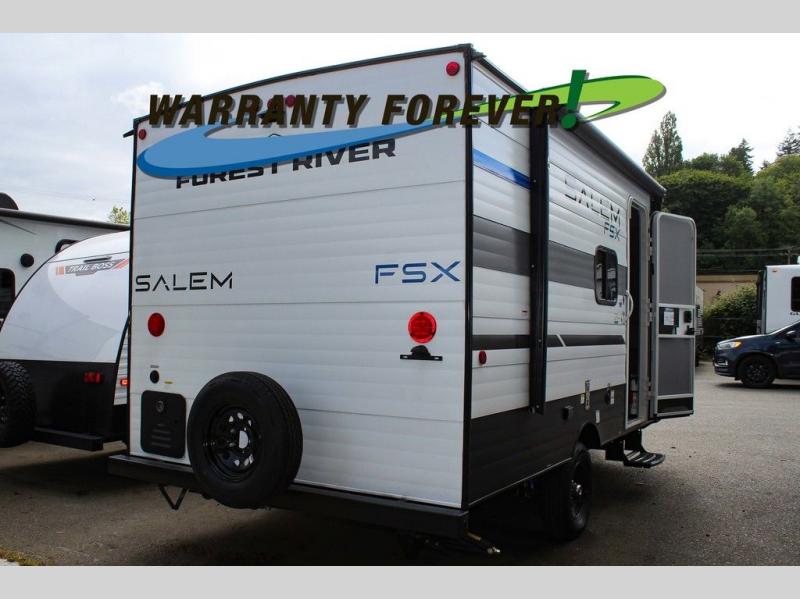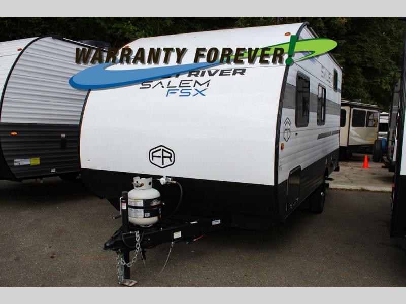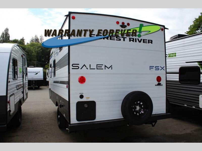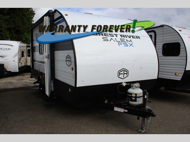 The Forest River Salem FSX travel trailers and toy hauler travel trailers are ultra comfortable and lightweight, perfect for first time or seasoned campers alike! You will love how easy it will be to relax with residential features that will make your space feel just like home, and the durable construction means you can enjoy your RV for years to come. There are a wide variety of floorplans to choose from, including couple's trailers, bunk models, and toy haulers, all with full bath and kitchen amenities and plenty of storage for all your gear!