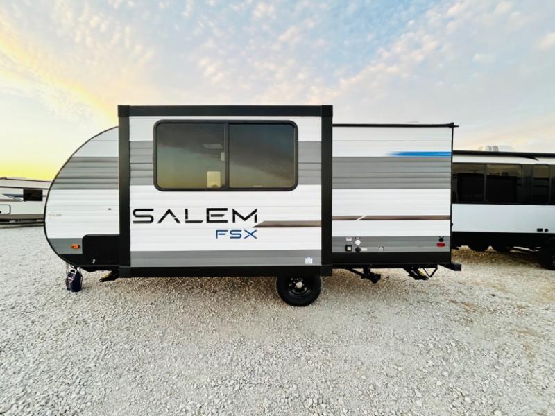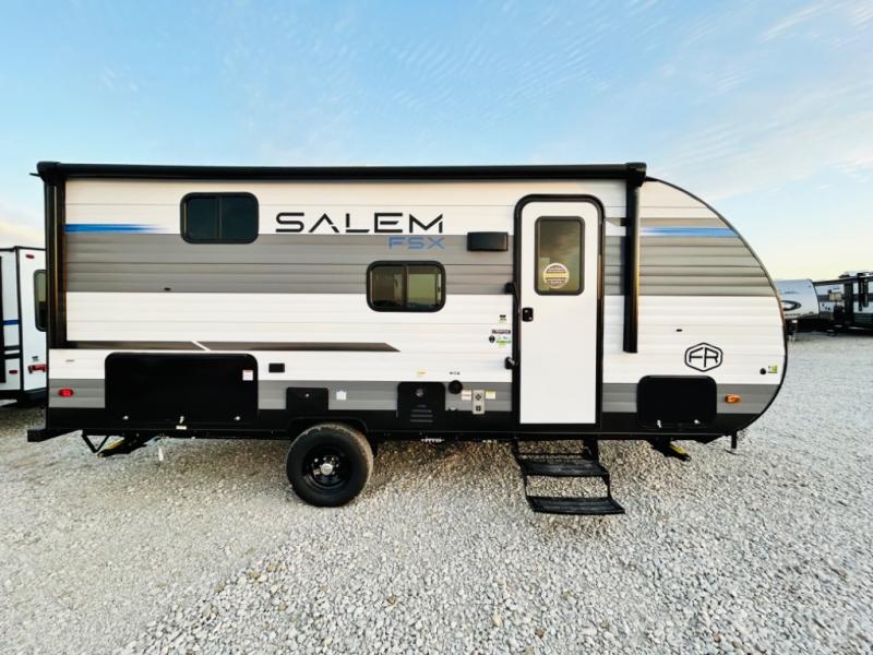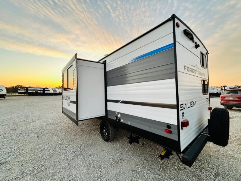 The Forest River Salem FSX travel trailers and toy hauler travel trailers are ultra comfortable and lightweight, perfect for first time or seasoned campers alike! You will love how easy it will be to relax with residential features that will make your space feel just like home, and the durable construction means you can enjoy your RV for years to come. There are a wide variety of floorplans to choose from, including couple's trailers, bunk models, and toy haulers, all with full bath and kitchen amenities and plenty of storage for all your gear!