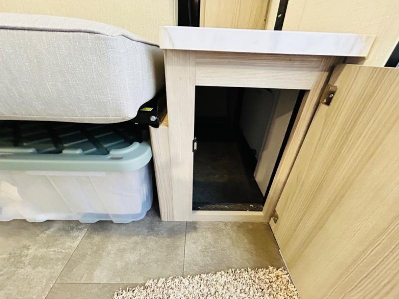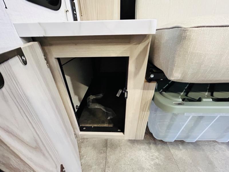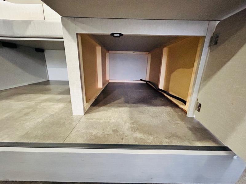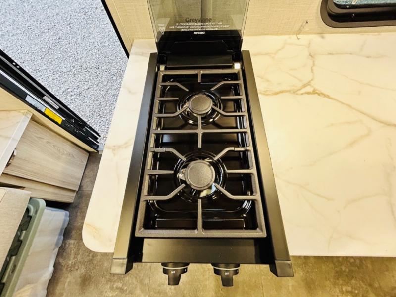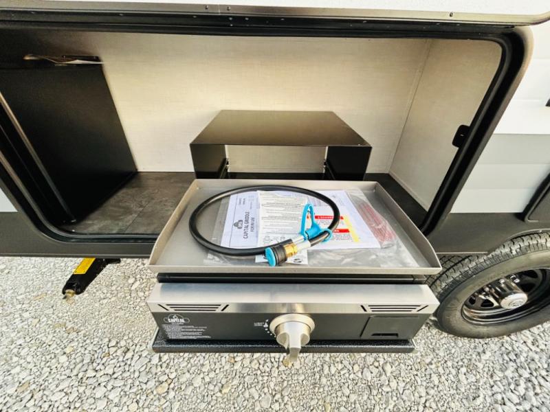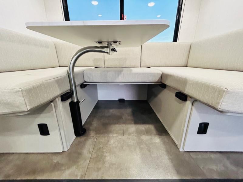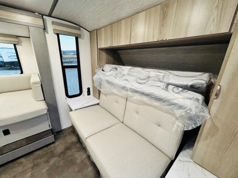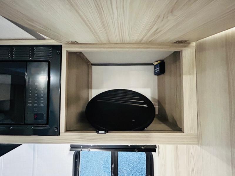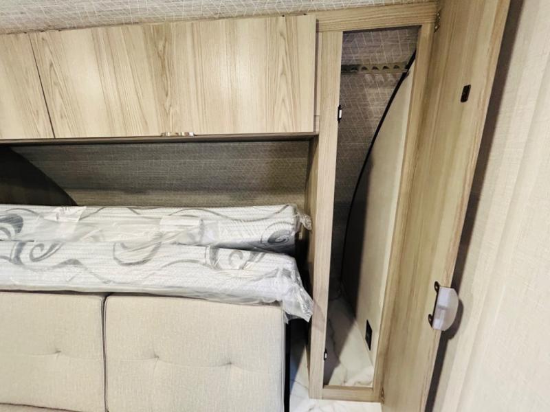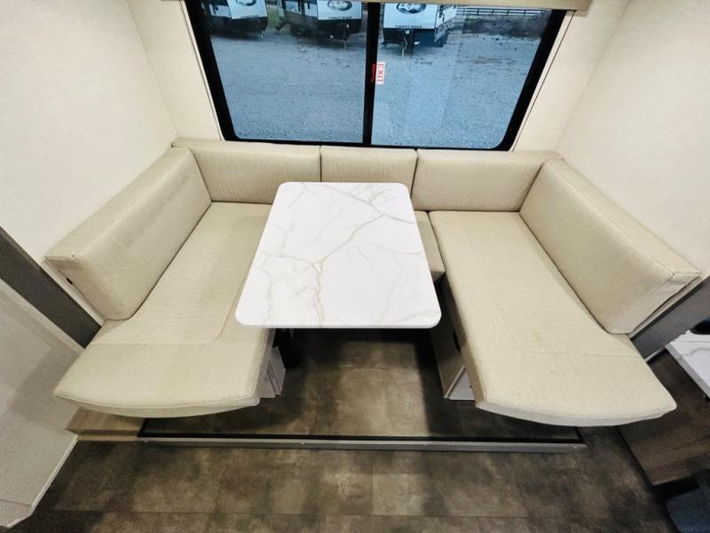 Start camping the right way in this travel trailer! It features a front Murphy bed that will double as your seating and sleeping space each day. The corner set of double-size bunk beds come with storage to keep things out of the way and are conveniently next to the rear corner bathroom with a shower with a skylight to freshen up in each morning. You can prepare your best home cooked meals indoors with the two burner cooktop or head to the outside kitchen to fry up some burgers while breathing in some fresh air. Enjoy your meals, play card games, and even sleep at the U-shaped dinette slide. You will also appreciate the outside shower and the exterior full pass-through storage for camp gear!