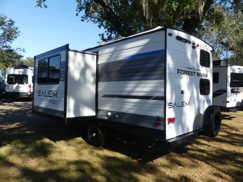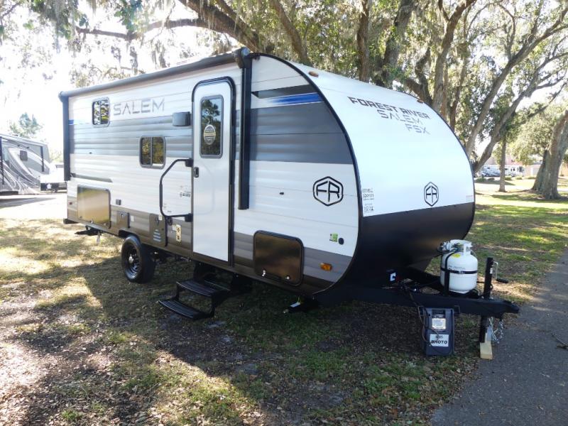 The Forest River Salem FSX travel trailers and toy hauler travel trailers are ultra comfortable and lightweight, perfect for first time or seasoned campers alike! You will love how easy it will be to relax with residential features that will make your space feel just like home, and the durable construction means you can enjoy your RV for years to come. There are a wide variety of floorplans to choose from, including couple's trailers, bunk models, and toy haulers, all with full bath and kitchen amenities and plenty of storage for all your gear!