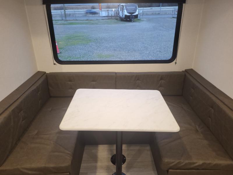 Versatile living is found all throughout this travel trailer! Starting with the front Murphy bed which transforms from sofa seating during the day to a queen bed at night. The kids can sleep on the set of double bed bunks in the rear curbside corner, and they will appreciate the rear corner bathroom being right next to them at night. You can prepare your best home cooked meals either indoors with the two burner cooktop and microwave oven, or breathe in some fresh air while you cook at the outside kitchen. Enjoy your meals at the U-shaped dinette slide and look out at your beautiful scenery through the panoramic window!