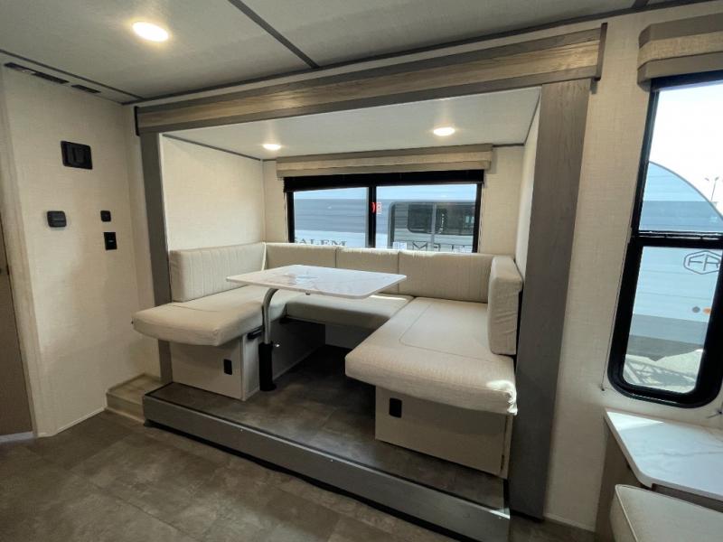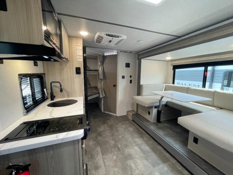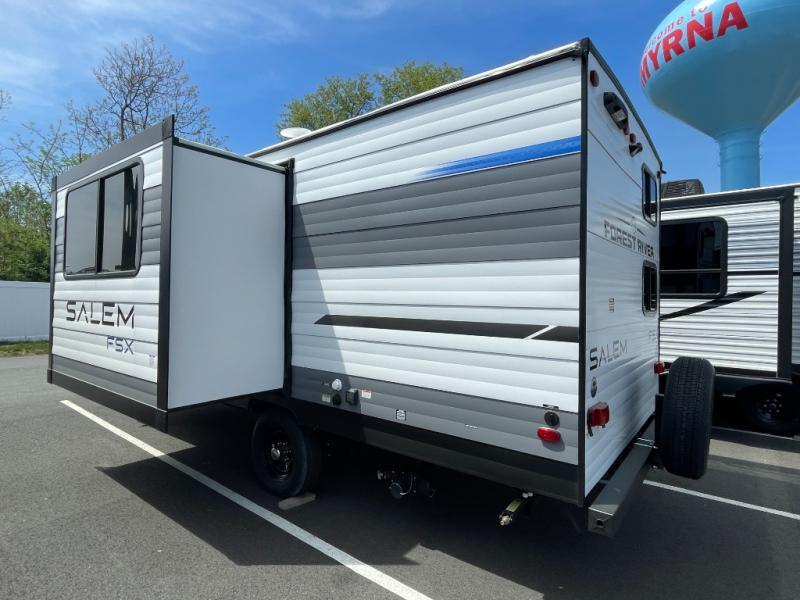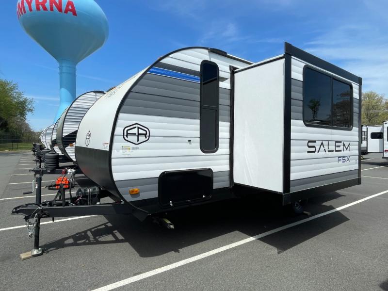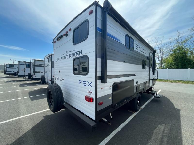 The Forest River Salem FSX travel trailers and toy hauler travel trailers are ultra comfortable and lightweight, perfect for first time or seasoned campers alike! You will love how easy it will be to relax with residential features that will make your space feel just like home, and the durable construction means you can enjoy your RV for years to come. There are a wide variety of floorplans to choose from, including couple's trailers, bunk models, and toy haulers, all with full bath and kitchen amenities and plenty of storage for all your gear!
