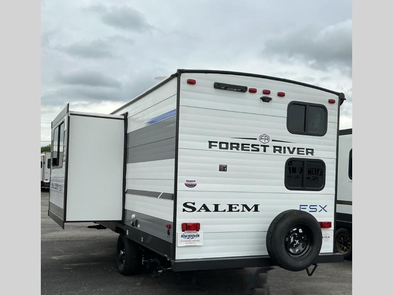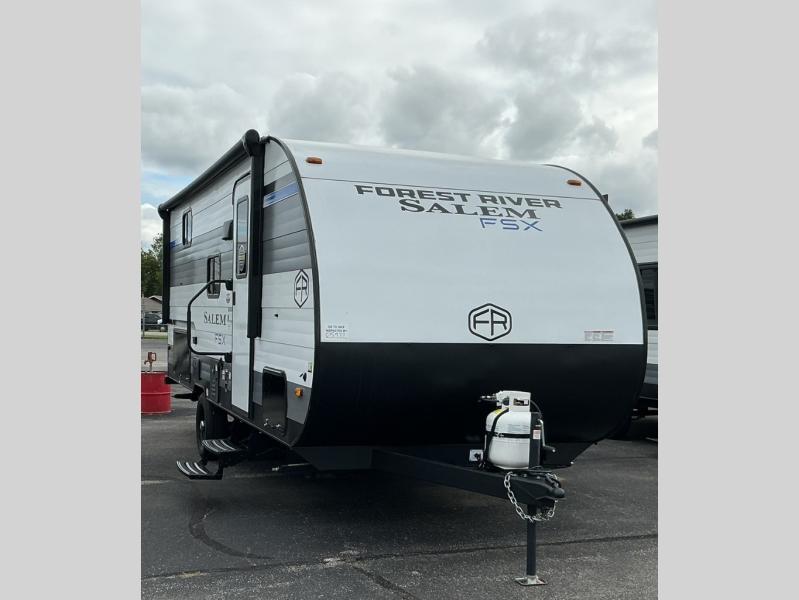 The Forest River Salem FSX travel trailers and toy hauler travel trailers are ultra comfortable and lightweight, perfect for first time or seasoned campers alike! You will love how easy it will be to relax with residential features that will make your space feel just like home, and the durable construction means you can enjoy your RV for years to come. There are a wide variety of floorplans to choose from, including couple's trailers, bunk models, and toy haulers, all with full bath and kitchen amenities and plenty of storage for all your gear!